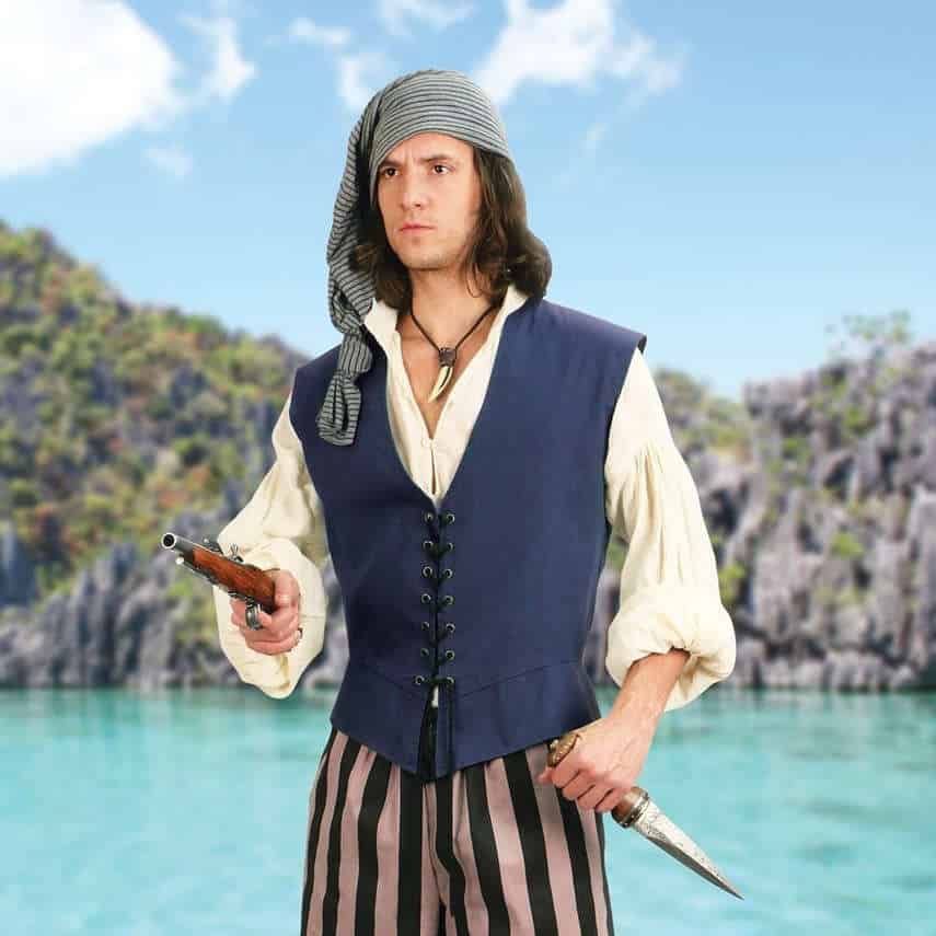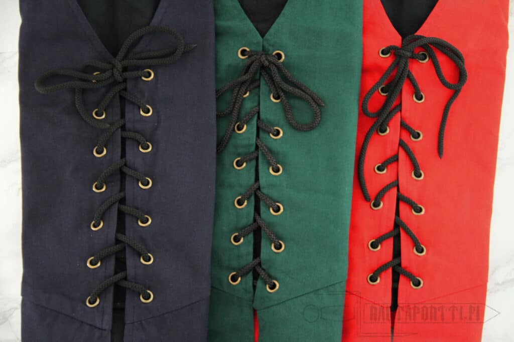 1600-luvun tyylinen nyöritettävä liivi sopii moneen teemaan merirosvosta lampunhenkeen ja piikatytöstä armottomaan kauppiaaseen. Liivi käy toki myös 1500- ja 1700-luvun merirosvojen tyylin muuttamiseen, vaikka onkin omiaan erityisesti 1600-luvulle.