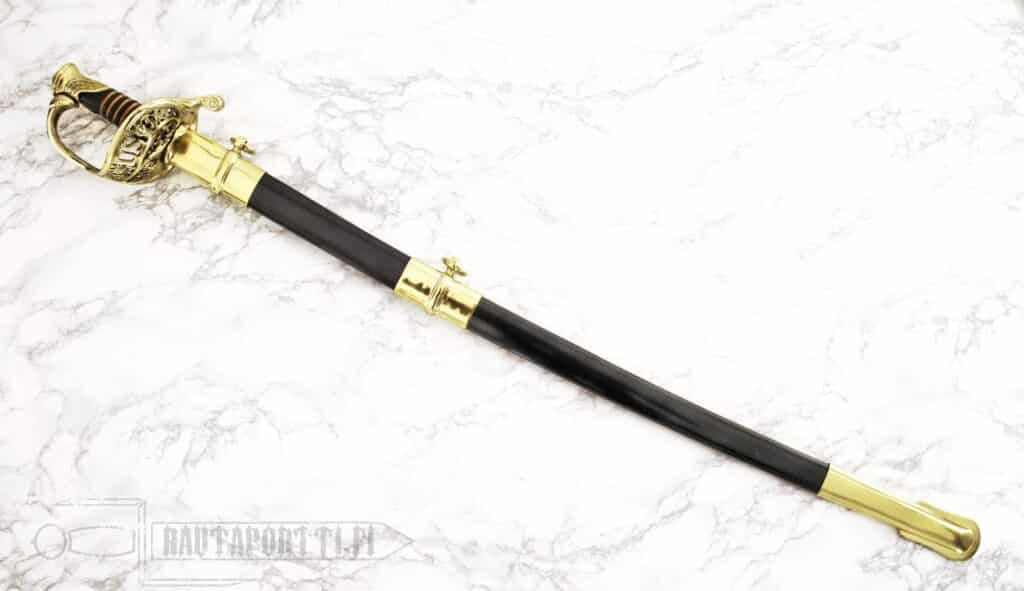 Tämä hieno sapeli on uskollinen jäjennös alkuperäisistä. Käsin taottu terä tehdään samoin vaatimuksin samasta teräksestä kuin brittien armeijan miekatkin, sotilaallisesta hiiliteräksestä. Miekan täytyy taipua yli 20° ja palata takaisin alkuperäiseen suoraan muotoon. Nahkapäällysteinen kovapuukahva on kierretty messinkilangalla, kuten alkuperäisissäkin. Miekka on koristeltu voimakkaasti korostamaan miekan ja sen kantajan korkeaa arvoa. Messinkisessä käsisuojassa on käsin kaiverretut lehtikuviot ja teksti “U.S.” oksiston välissä. Terään on etsattu lehtiä, sotilaspalkintojen symboleita, “U.S.”, “E Pluribus Unum” ja “Iron Proof”. Sotaa edeltävinä vuosina myös monet Konfederaation upseerit, mukaan lukien kenraali Robert E. Lee, kantoivat tätä miekkaa intiaani-kampanjoissa. Ruoti kulkee koko matkan kahvan läpi ja on niitattu ponnen päähän. Huotra on mustaksi sinistettyä terästä ja siinä on messinkiset helat ja kantolenkit.