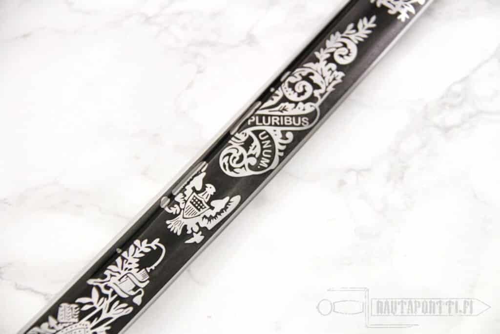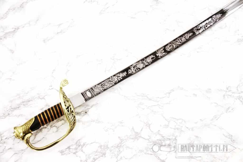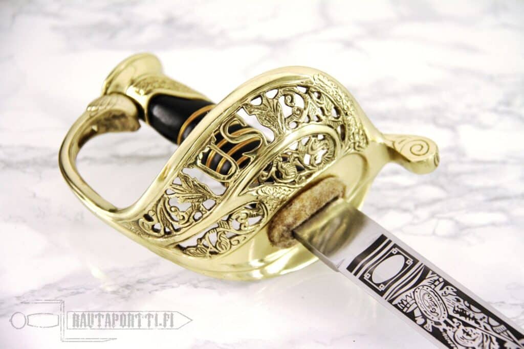 Tätä miekkaa pidetään tärkeänä osana Yhdysvaltain sotahistoriaa. Tässä erittäin koristeellisessa sapelissa on terä, joka on valmistettu korkeahiilisestä 1065 teräksestä.
