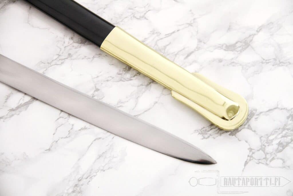 - Kahva: nahkapäällysteinen kovapuu messinkilankapunoksella