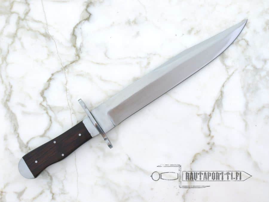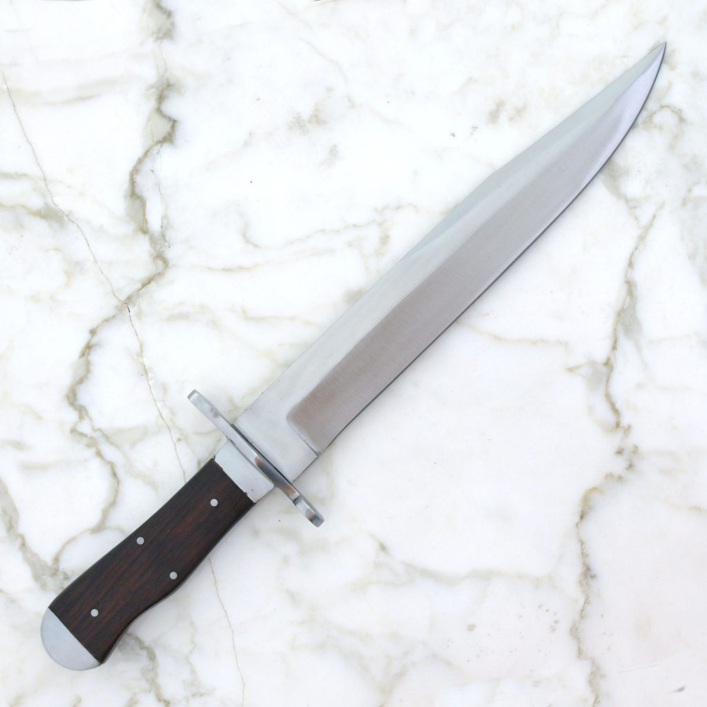1800-luvun loppua kohden bowie-veitset olivat yhä muodikkaita, mutta niiden kantamisesta haluttiin tehdä huomaamattomampaa, joten niitä alettiin valmistaa ohuemmilla ja sirommilla kahvoilla kuin aiempina vuosikymmeninä oli ollut tapana. Tämä mainio veitsi on kopio alkuperäisestä tuon ajan englantilaisvalmisteisesta Bowiesta, joita tehtiin Yhdysvaltain markkinoille.