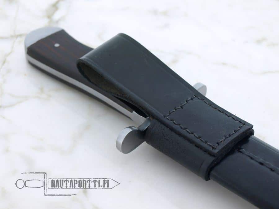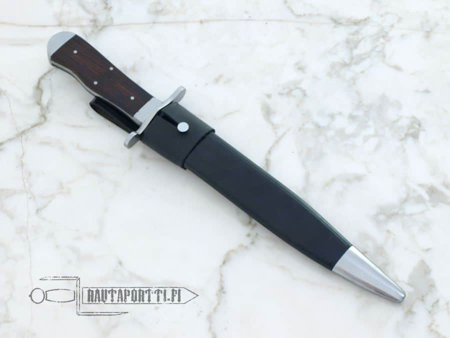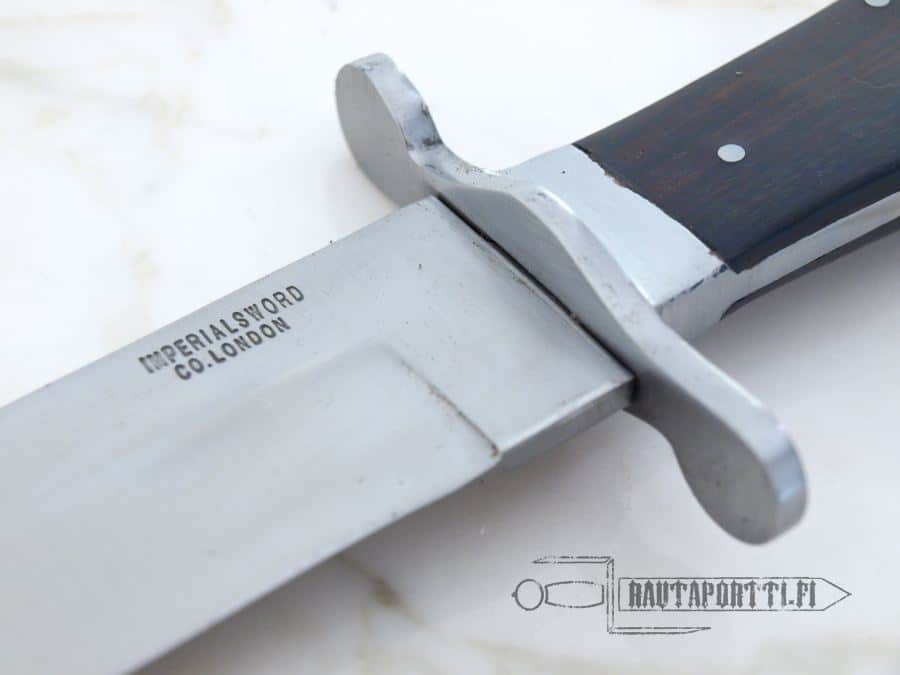 Kuten alkuperäisessäkin, myös veitsen vasemmalla puolella on alkuperäisen valmistajan leima “Imperial Sword Co. London.” Veitsessä on yksinkertainen väisti, jonka päät on pyöristetty ja joka sopii erinomaisesti veitsen koreilemattomaan ulkonäköön. Kahvaosa on kapea, ja siitä saa hyvän otteen.