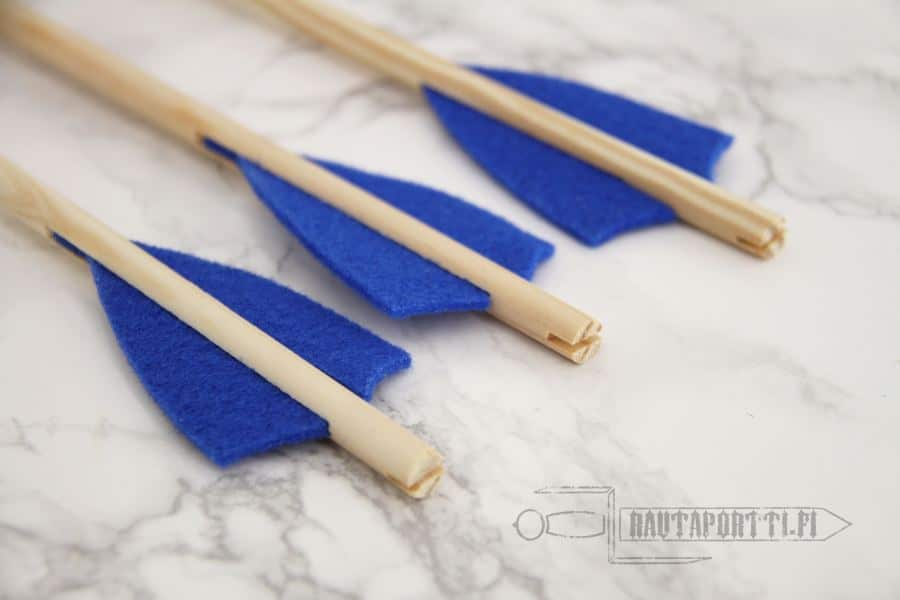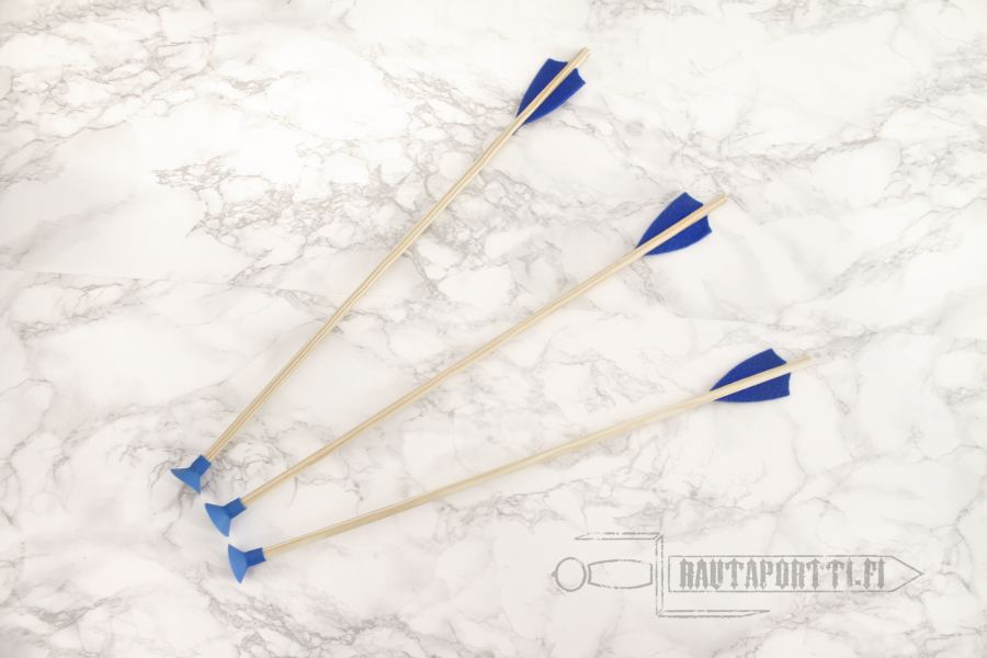 Lasten nuolissa on kuminen sininen imukuppipää, jotta ampuminen olisi sekä hauskaa että turvallista. Siniset huopa”sulat” auttavat nuolta lentämään tasaisemmin. Nuolet sopivat myymäämm