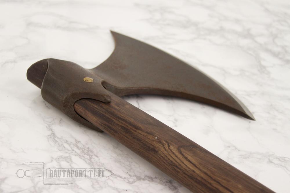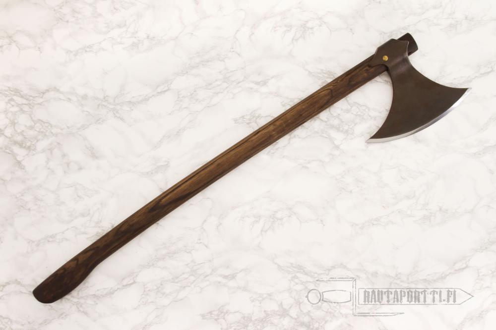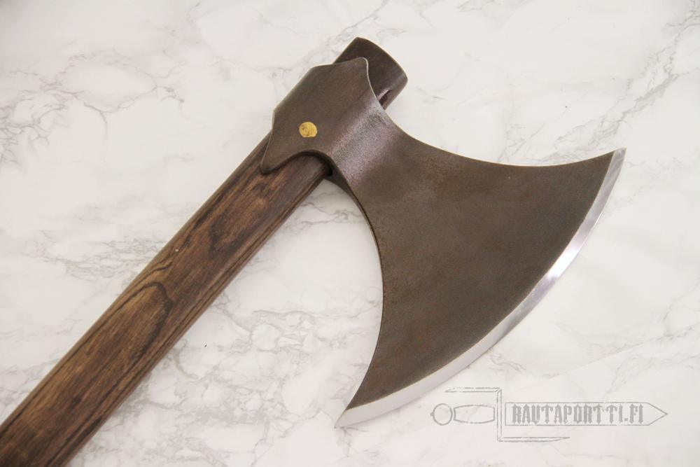 Hanwein tanskalaiskirves on epäilemättä erinomainen esimerkki rauhanajan työkalusta joka sodan tullen muuttuu aseeksi. Kirves on yhtä lailla kotonaan kaataessaan puita kuin vihollisiakin ja herättää mielikuvan metsien miehestä sotajalalla. Tämä kirves on on kokoaan painavampi; lähes 2,5 kg painoisena se iskee kuin teroitettu leka, eikä todellakaan ole ollut heikkoranteisen ase. Tämä kirves on tehty käytettäväksi, ja se kädessäsi voit tuntea itsesi entisaikain viikinkiretkeilijäksi pilkkoessasi puita takapihallasi. Kirveen mukana toimitetaan teräsuojus suojaamaan niin terää kuin kantajaakin.