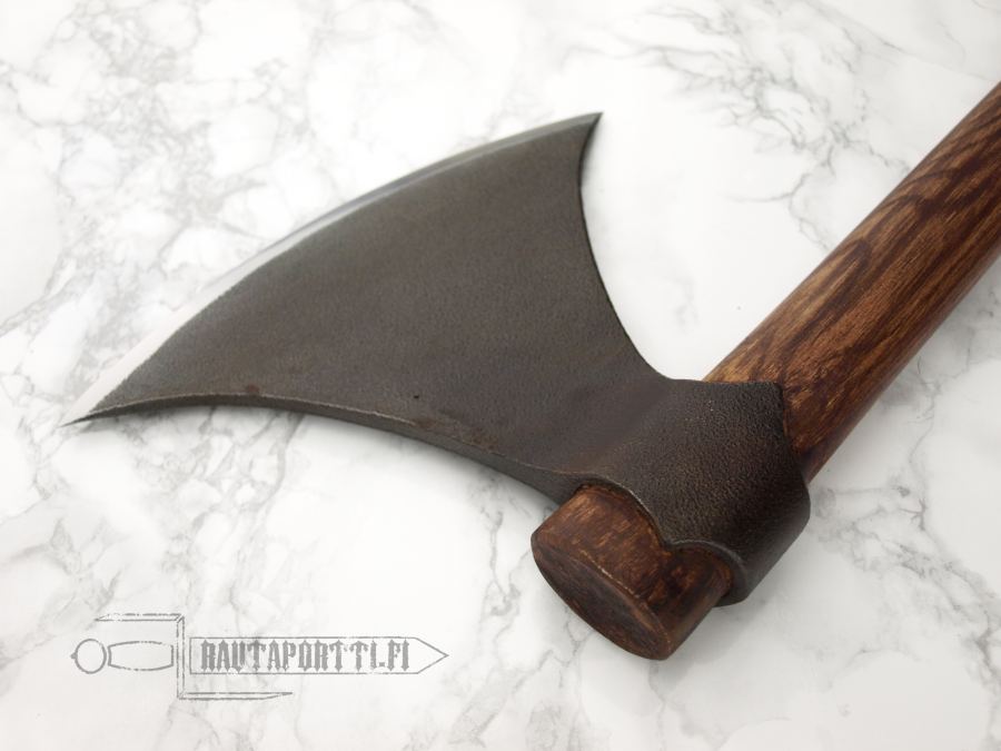 Antikoitu viikinkikirves on yleistä ja tyypillistä viikinkimallia. Keskiraskaassa kirveessä on hiiliteräksestä taottu, karkaistu terävä terä ja kovapuinen varsi. Terä on paksuudeltaan keskiluokkaa ja soveltuu niin taistelukirveeksi kuin puuntyöstöön ja pienten polttopuiden halkaisuun. Terän pinta on antikoitu/patinoitu autenttista ulkomuotoa varten. Kirves on tehty käytettäväksi, ja se kädessä voi tuntea itsensä menneiden aikojen viikinkiretkeilijäksi jo halkoja tehdessäsi. Kirveen mukana toimitetaan nahkainen teräsuoja.