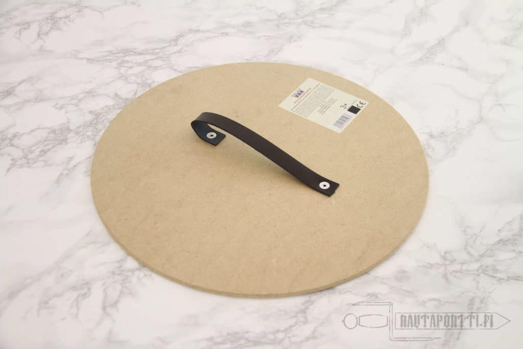 - Kilven takana on keinonahkainen remmi kilven kantamista ja käyttöä varten