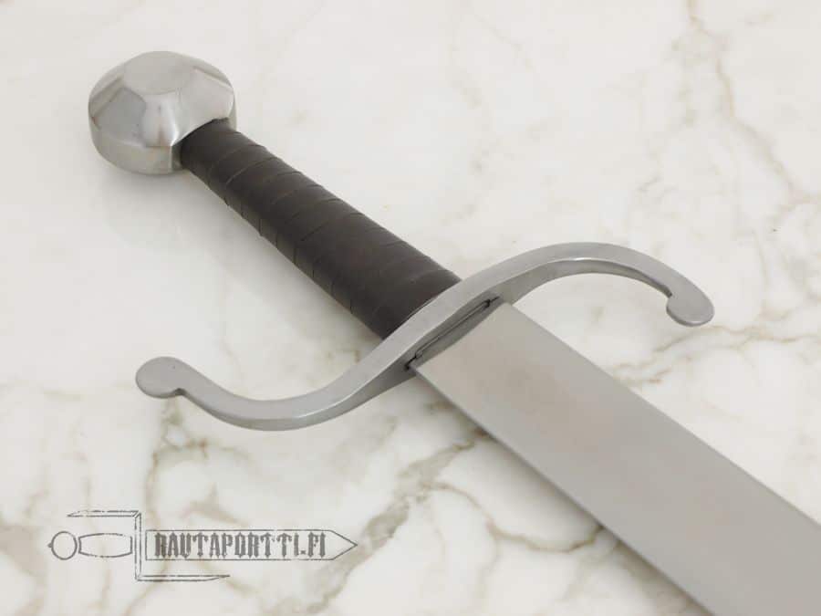 Rakennettu kestämään taisteluiden rasituksia niin historianelävöittäjien taisteluissa kuin teattereiden näyttämöilläkin. Valmistettu 51CrV4 hiiliteräksestä ja lämpökäsitelty HRC 50-52 kovuuteen. Paksut reunat ja kärjet on pyöristetty nirhaumien ja kolhujen minimoimiseksi. Rakenne vastaa alkuperäisiä historiallisia kappaleita: ponsi on niitattu kiinni ja vahva pyökkipuinen kahva on päällystetty nahalla. Väisti ja ponsi ovat terästä. Valmistaja: Victor Berbekucz.
