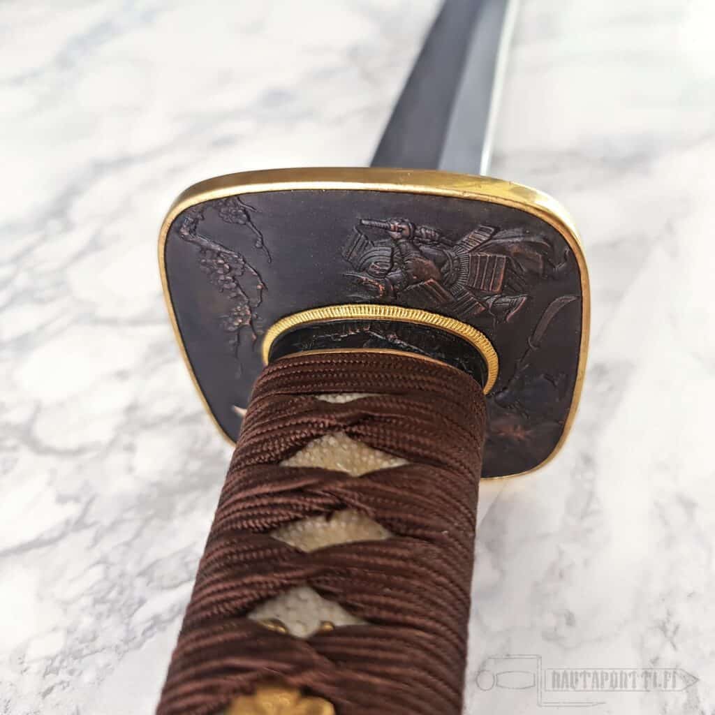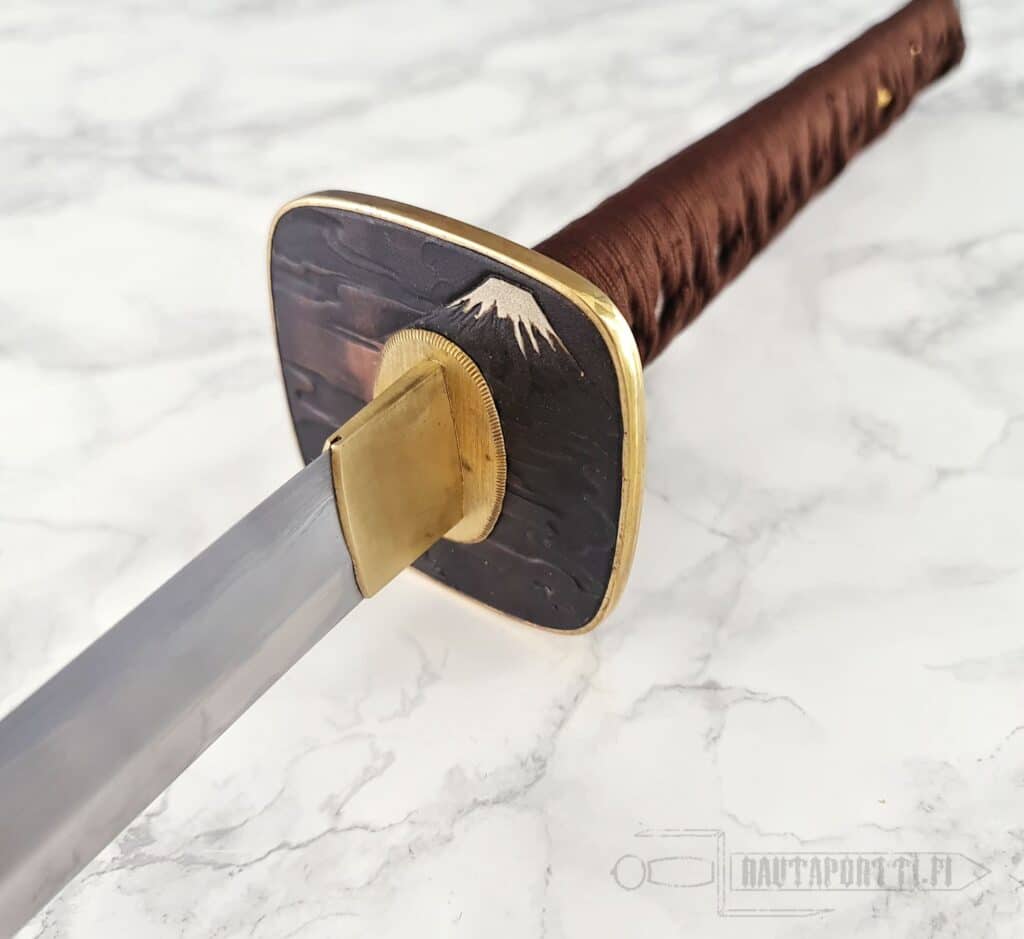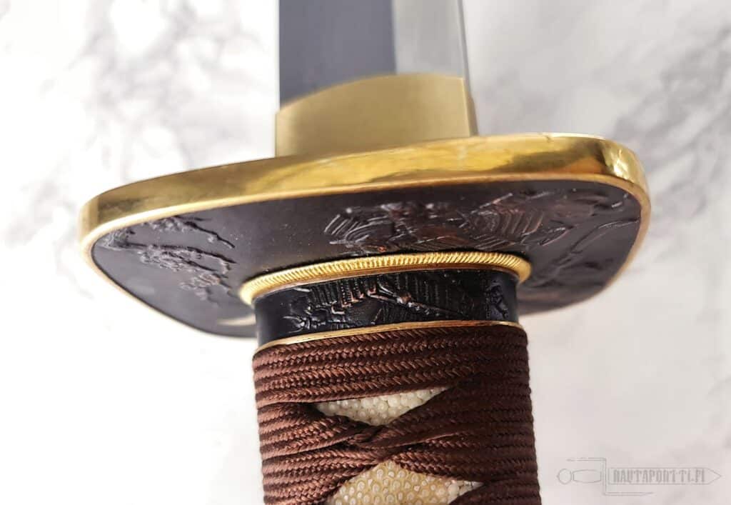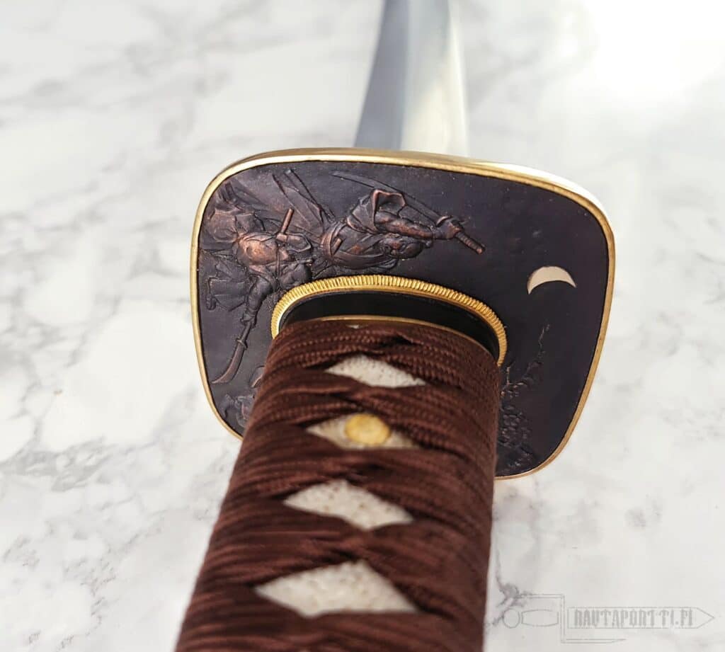Tsukassa on käytetty korkealaatuista rauskun nahkaa (same). Tsuba on valmistettu mustaksi patinoidulla pronssilla päällystetystä raudasta, jonka yksityiskohdissa on käytetty kultaa ja hopeaa. Tsubassa ja kashirassa on kuvattuna samuraiden taistelukohtaus ja tsuban toisella puolen on kuvattuna kuuluisa Fuji-vuori.