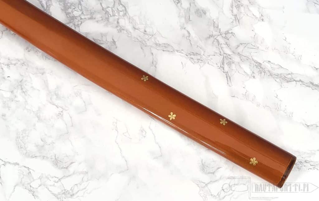 Tämän Bushido Katanan terä on käsintaottu K120C-jauheteräksestä keskipitkällä (chu) kissakilla. Terän teräs on taottu, taitettu, taottu yhteen, taitettu, taottu yhteen jne, jolloin teräkseen muodostuu vahva ja perinteinen kerrosrakenne. Kerrosrakenne on nähtävissä terän kiilloitetun pinnan aaltoiluna ns. teräksen syyrakenteena. Saya on lakattu paksusti ja koristeltu messinkisillä kirsikankukilla (sakura).