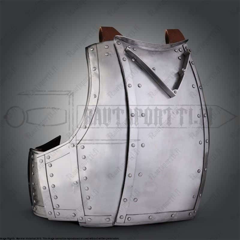 - Pienempää rintapanssaria, kuten tämä panssari, on käytetty lisäsuojana rengashaarniskan päällä