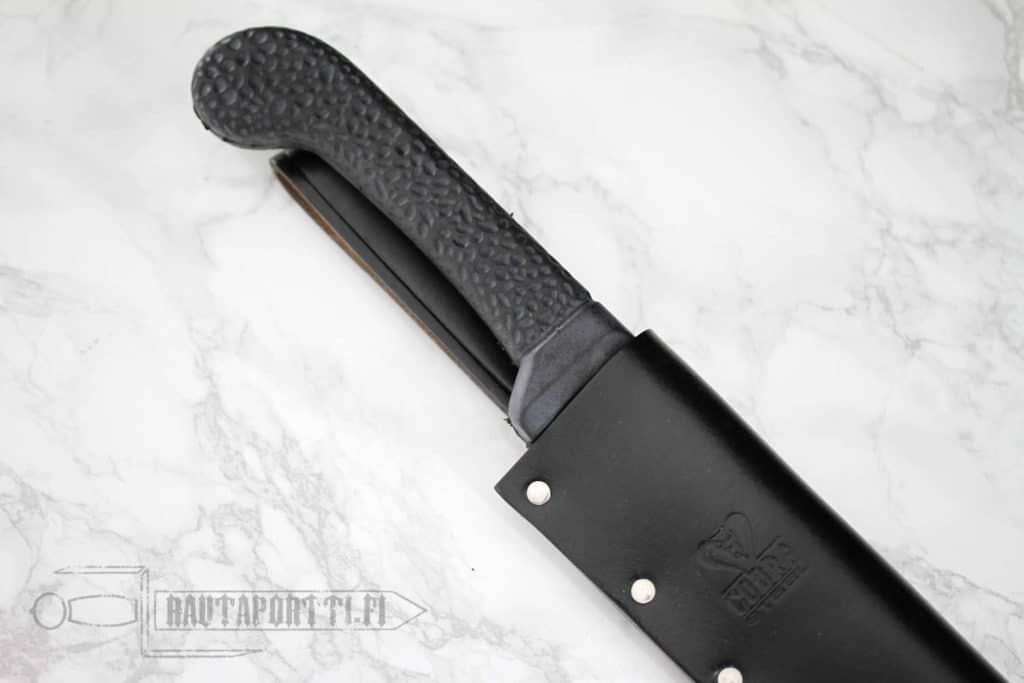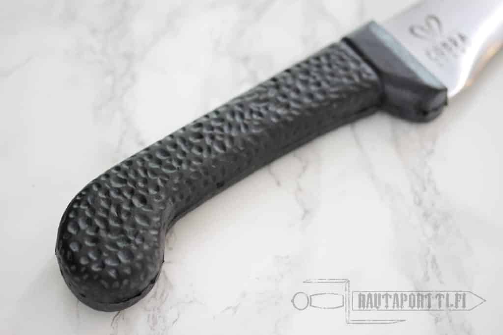 Täyspitkien ruotien ympärille on valettu tukevat kumiset säänkestävät kahvaosat. Kumipinta antaa hyvän ja pitävän otteen kaikissa olosuhteissa, myös hansikkaat kädessä, ja samalla se toimii iskunvaimentimena. Veitset toimitetaan valmiiksi teroitettuina, ja niiden mukana tulee niitattu nahkainen tuppi.