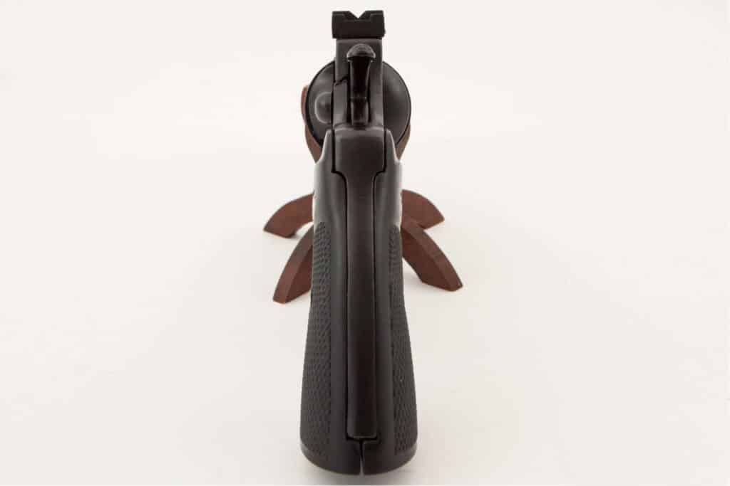 - Asekopion valmistuksessa on käytetty valumetallia, kahvalevyt ovat muovia. Koristeaseessa käytetty samakki eroaa monin tavoin teräksestä, eli ase ei kestäisi ampumisessa syntyvää painetta, sillä ei voi oikeasti ampua, eikä sitä voi millään keinoin muuttaa ampumakäyttöön sopivaksi.