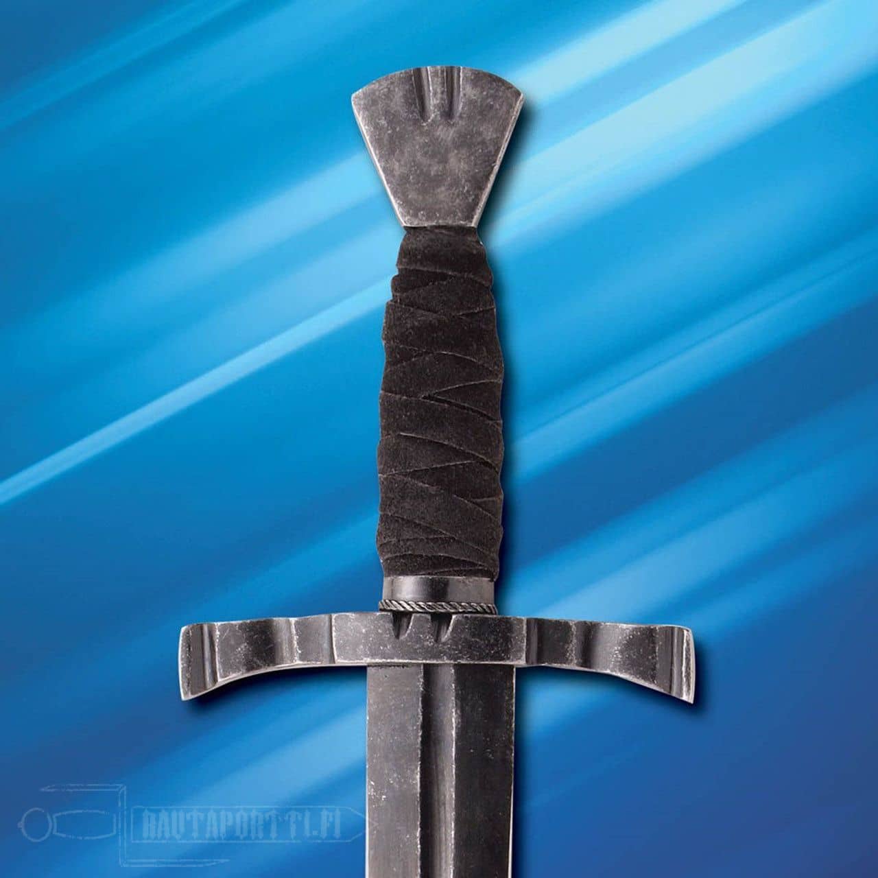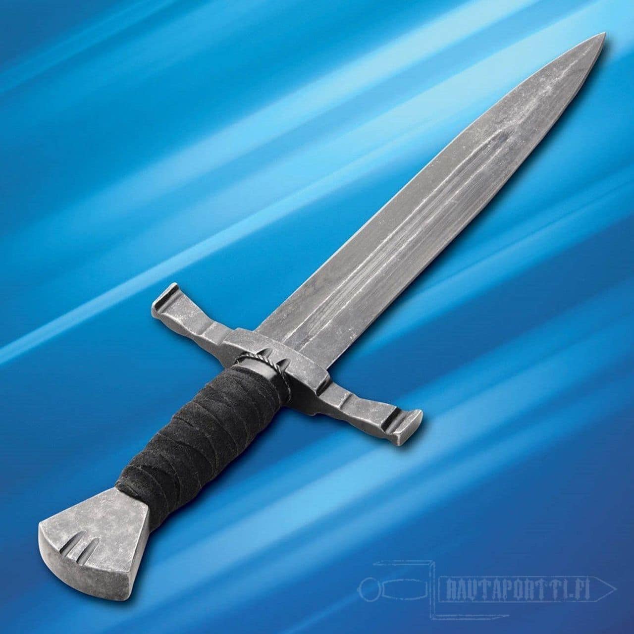 Tässä kaksiteräisessä keskiaikaisessa tikarissa on 1065 korkean hiilipitoisuuden teräksestä käsin taottu terä, joka on karkaistu 50-55 RC kovuuteen. Taistelukarkaistu tikari on viimeistely mustalla sinistyksellä/patinalla ja leveä täysmittainen ruoti on niitattu ponnen päästä. Tämä valmiiksi teroitettu tikari on läpäissyt tiukat laatuvaatimustestit, ja mukana tulee tyyliin sopiva nahkainen tuppi ja aitoustodistus.