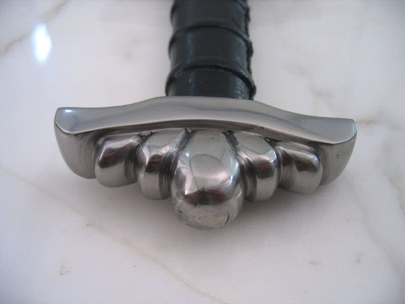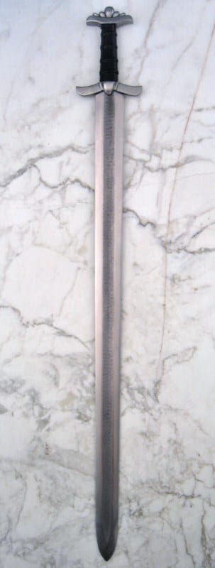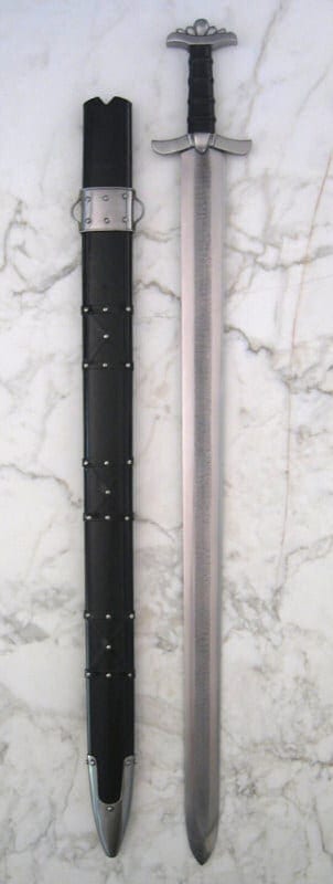 Tämän miekan alkuperäiskappale on löydetty Suomesta ja se ajoittuu vuosien 850 ja 900 väliin. Ponsi on tyypillinen viikinkimiekoille, mutta väisti on erikoinen, sillä se taipuu lievästi ylöspäin. Tämän tyyppiset varhaiset viikinkimiekat soveltuivat hyvin nopeisiin viiltohyökkäyksiin. Käsin taotun terän veriura on käsitelty hapolla, jotta terän damascus-rakenne on saatu kauniisti esille. Ponsi ja väisti ovat terästä, ja puinen kahva on päällystetty nahalla. Puinen tuppi on päällystetty nahalla ja koristeltu vielä teräksisillä niiteillä.