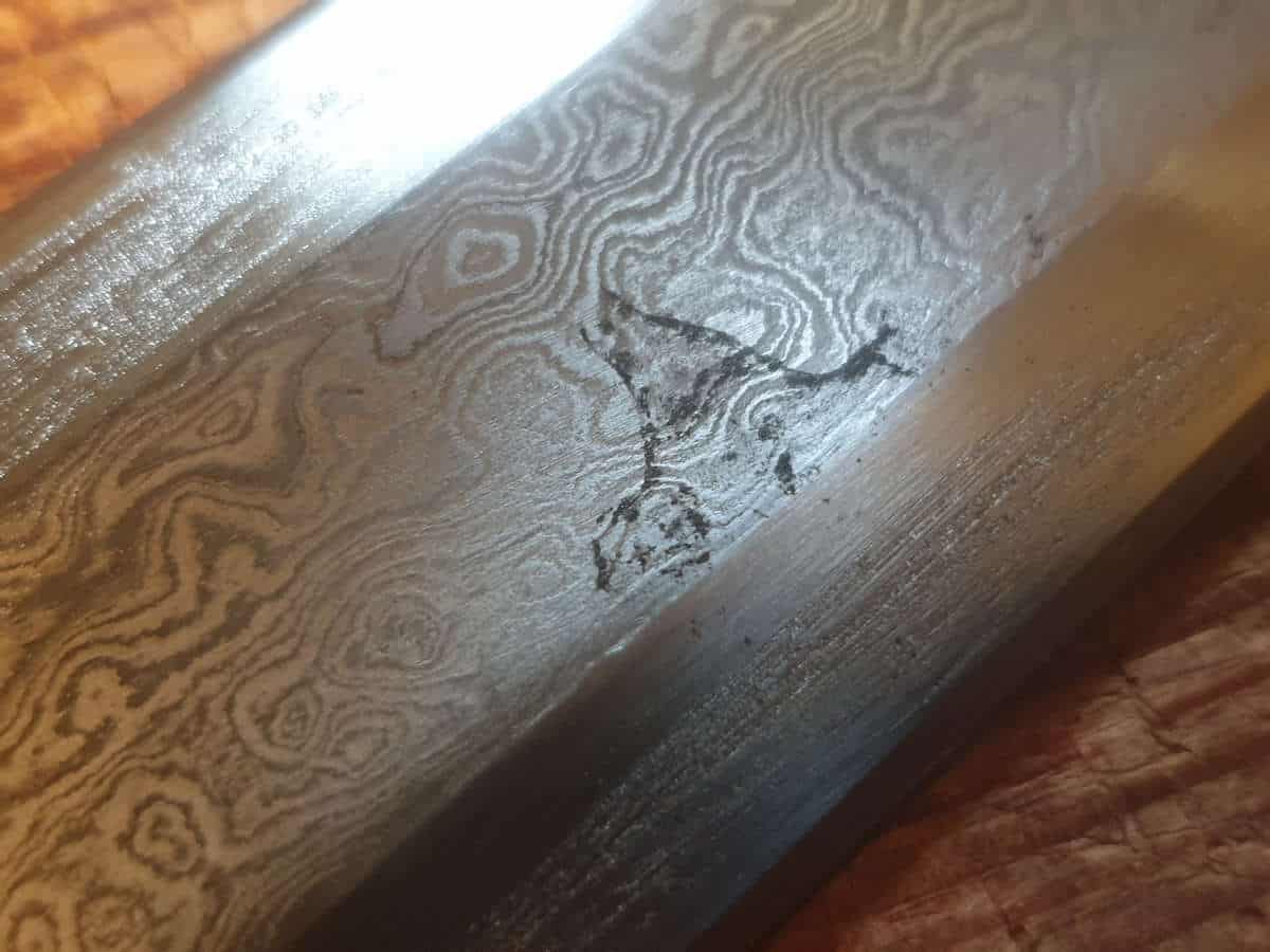 - Kappaleissa pieniä värivirheitä/naarmuja terän damascus-kuvioinnissa, katso kuvat