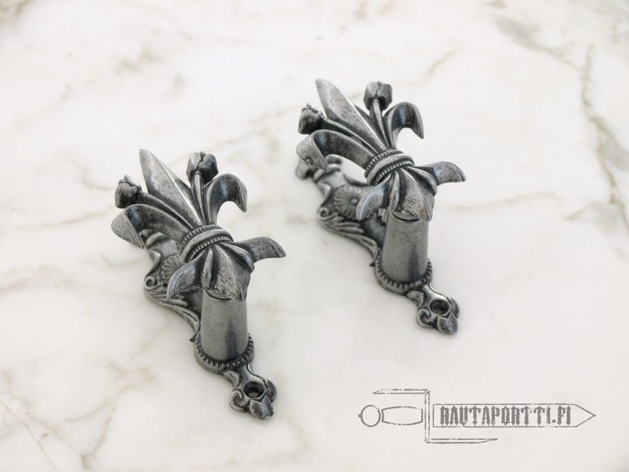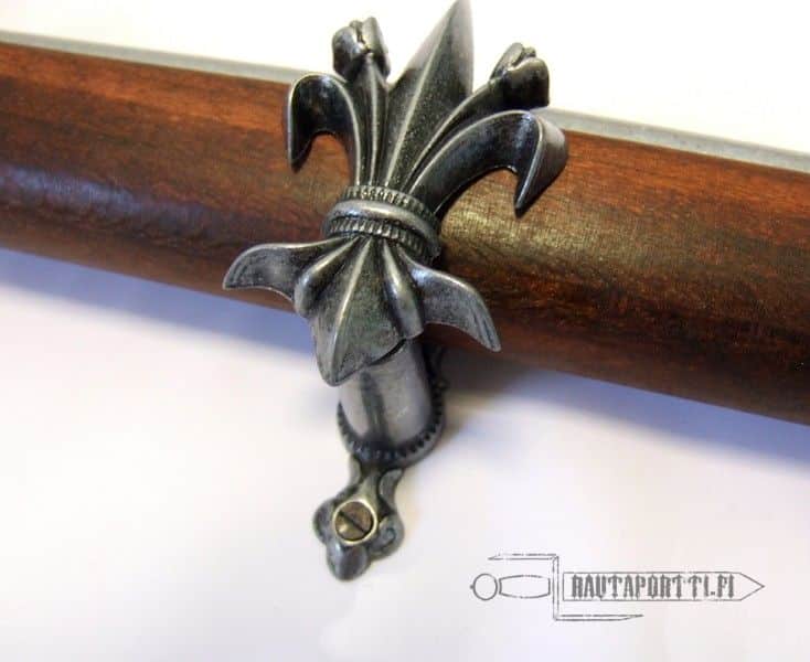 Muunna aseesi seinäkoristeiksi näillä tyylikkäillä fleur-de-lis seinäripustuksilla. Ripustukset saa kiinnitettyä seinään niin lähelle tai kauas toisistaan kuin on tarve, joten niillä saat turvallisesti esille aseen kuin aseen, miekoista ja kirveistä tikareihin ja tuliaseisiin. Aseet saa esille joko vaaka- tai pystysuoraan, miten haluatkin.