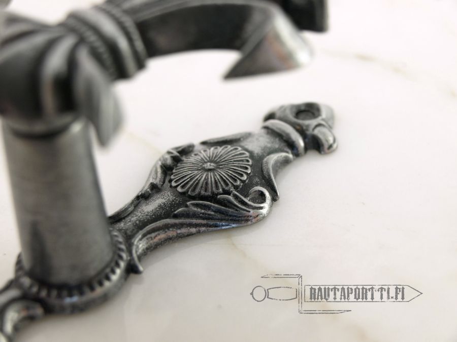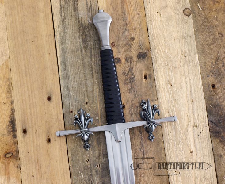 • Miekan saa ripustettua näiden koukkujen avulla niin pystyyn, vaakaan kuin vinoonkin (esim. kaksi miekkaa ristiin seinälle)