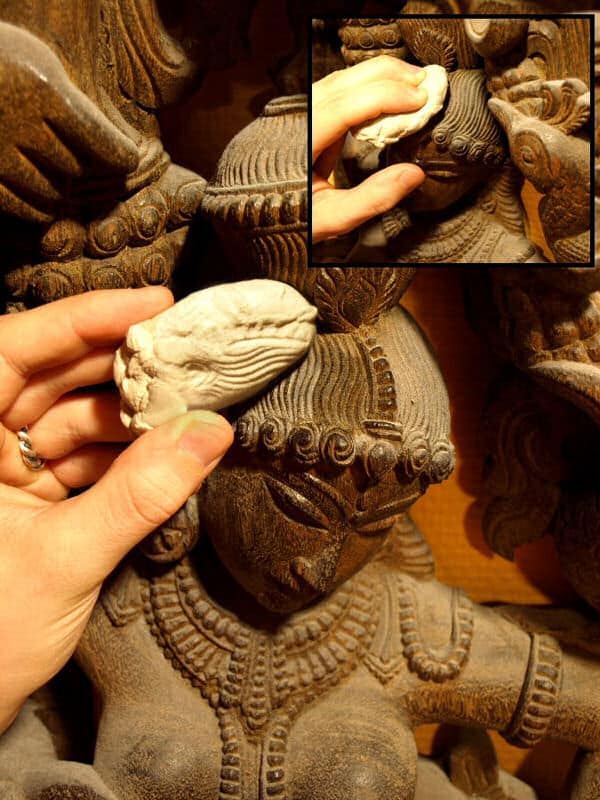 Koska Groom/stick muotoituu pinnan mukaiseksi omalla painollaan tai pienellä painamisella, voidaan massaa käyttää hyväksi kaiverrettujen ja epätasaisien pintojen kuivapuhdistuksessa. Mm. veistoksien, kuvapatsaiden, aseiden, panssarien, korujen ja korutavaroiden pinnat voidaan puhdistaa painamalla kumimassaa pintaa vasten. Kumi muotoutuu pinnan mukaan, kiinnittyy epäpuhtauksiin ja irrottautuu pinnasta siististi jättäen puhtaan pinnan jälkeensä.