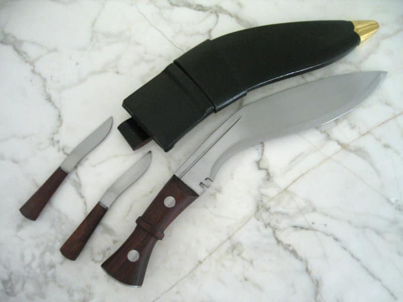 Korkealaatuinen hiiliteräksisen terä pitää teränsä hyvin ja aseen rakenne kestää hyvin aktiivisessakin käytössä. Tässä kukrissa on perinteinen kovapuinen kahva ja standardiksi muodostunut metallinen kahvan pohjalevy. Nahalla päällystetty puinen tuppi ja kaksi pienempää veistä sisältyvät hintaan. Paketin mukana tulevien pikkuveitsien koko ja terän malli vaihtelee hieman erästä toiseen. Toinen pikkuveitsi ei perinteisesti ole ollut teroitettu, vaan sitä on käytetty esim. tulusrautana tai vastaavana. Toista terävää pikkuveistä on käytetty nylkemiseen ja muihin pikkutöihin. Tupessa on vyölenkki, josta saat kukrin ripustettua vyölle tai rinkan kylkeen matkalle mukaan.