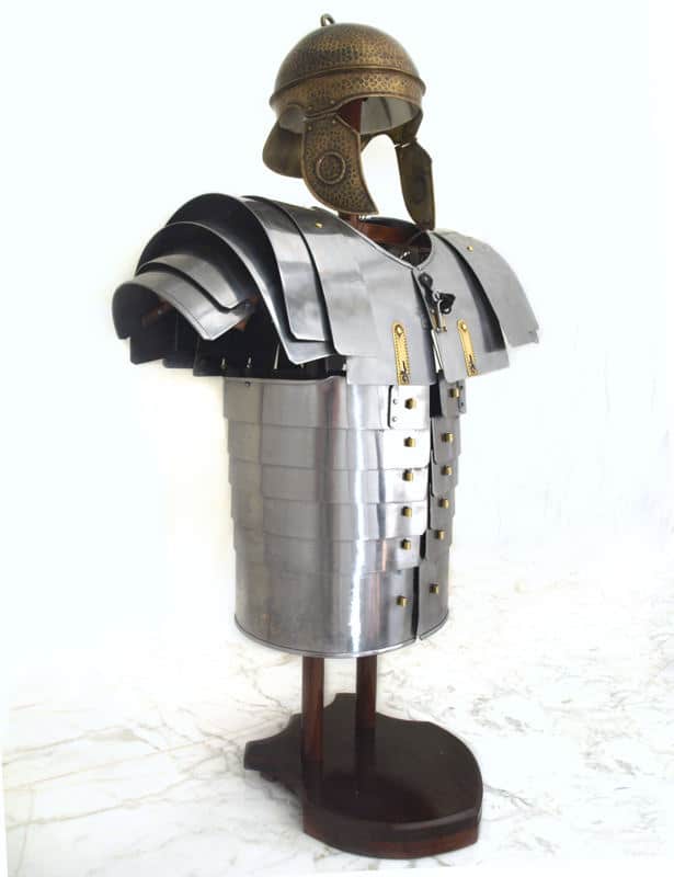 Tämä kovapuinen haarniskateline on omiaan torsomittaisen haarniskan esilläpitoon ja säilytykseen. Telinettä voi käyttää monien erityyppisten haarniskojen ripustukseen, niin keräilykappaleiden esillepanoon kuin käyttöhaarniskojen säilytykseenkin. Telineeseen sopivat niin Lorica Segmentatat, rengashaarniskapaidat kuin levyhaarniskatkin. Taittuvien käsivarsien ansiosta telineeseen saa halutessaan ripustettua myös mm. gambesonit. Myös olkapanssarien kiinnitys tähän tukevaan telineeseen onnistuu. Yksikään haarniska ei ole täydellinen ilman kypärää ja niinpä tässä telineessä onkin oma paikka kypärälle. Saat telineeseen siis haluamasi kokonaisuuden yhtenäisesti esille. Tämän lakatun tukevan kovapuisen telineen kokoaminen on helppoa eikä vaadi työkaluja.