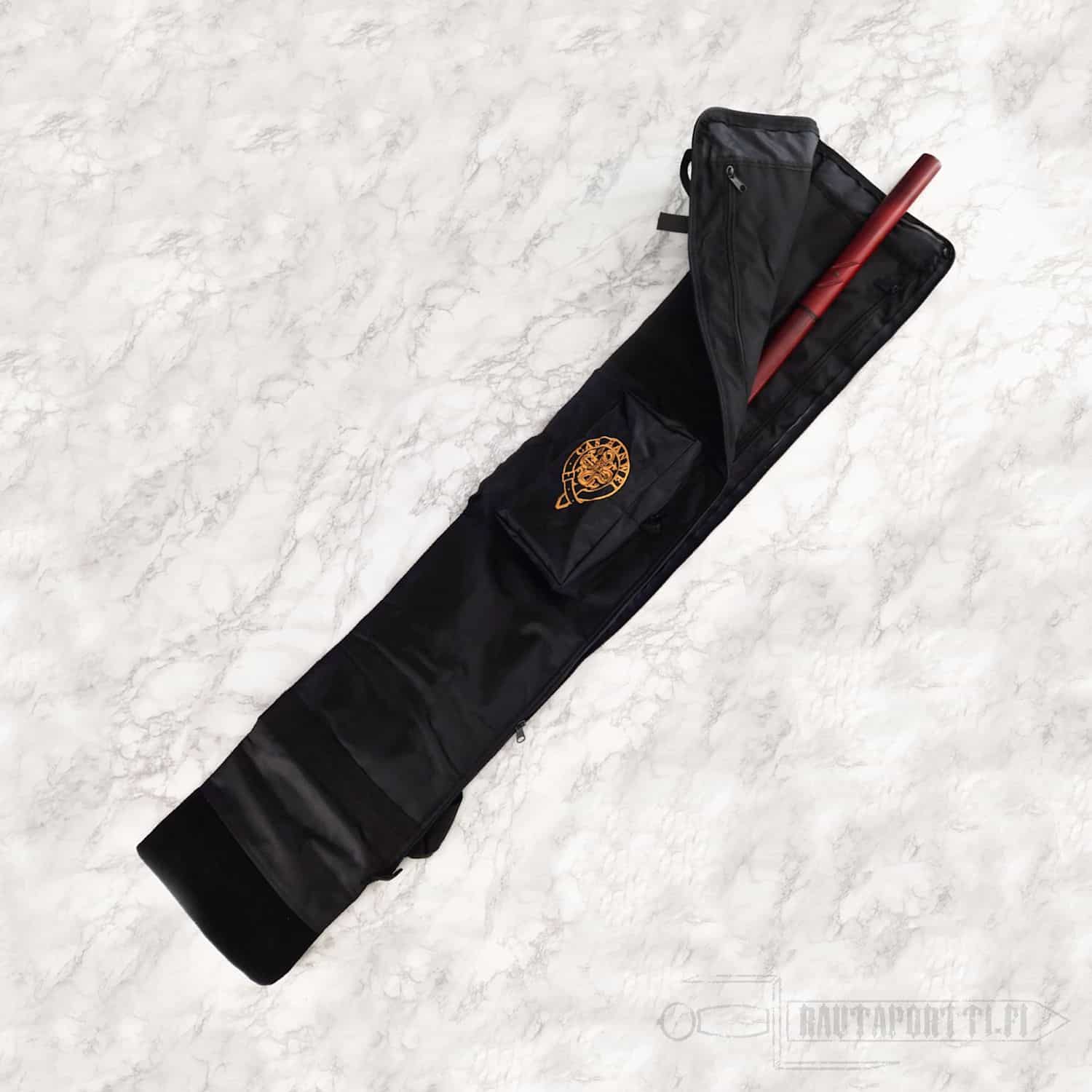 Laukku on valmistettu mustasta tukevasta kankaasta, ja kovimmalla kulutuksella olevat kohdat on vielä vahvistettu mokkanahkaisilla paikoilla. Olkahihna ja kantokahva antavat mukavasti vaihtoehtoja kantamiseen. Laukussa on kaksi vetoketjullista sisäosastoa miekoille ja laukun ulkopuolella on erillinen lokero huoltotarvikkeille. Tämä laukku sopii hyvin kenelle tahansa, jonka tarvitsee matkustaa miekat mukanaan joko kaupungin tai maan toiselle puolen.