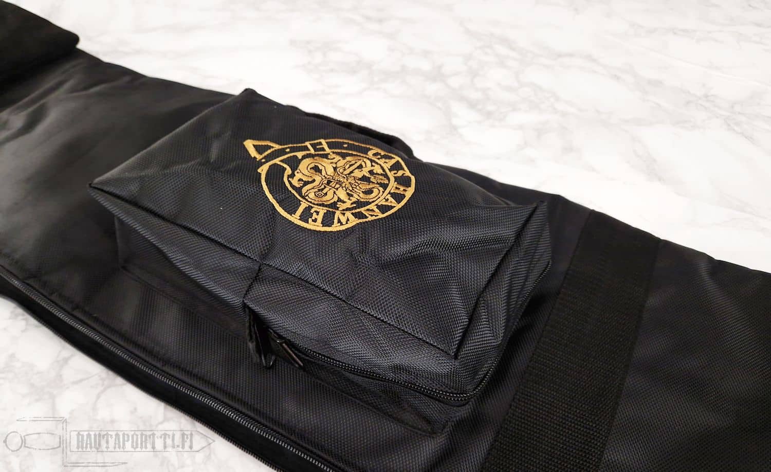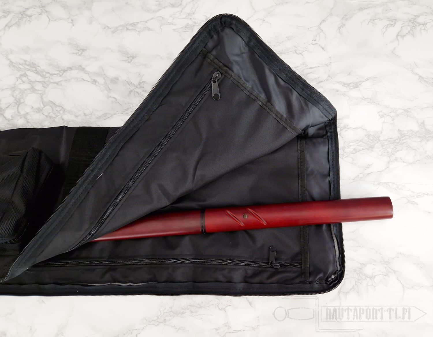 - 2 sisätaskua miekoille ja ulkotasku huoltotarvikkeille