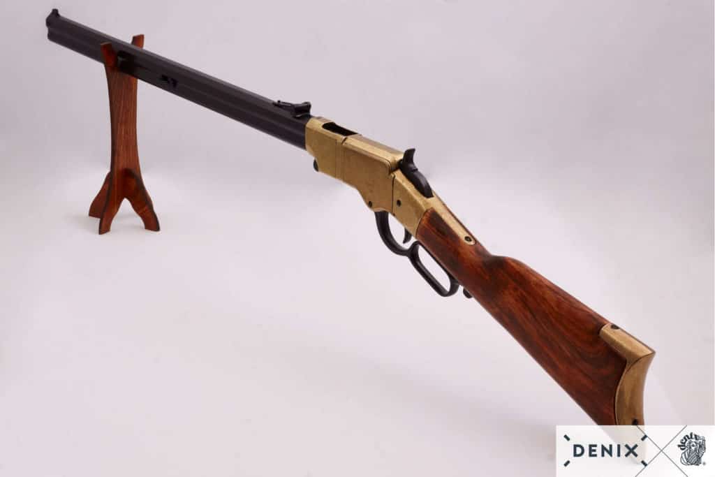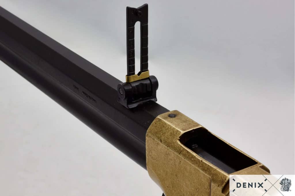 A very authentic rifle. The first Denix rifle, I bought. The replica is very firm and bulky build (as real thing) the mechanism simulation is very good made. No bullet can be loaded, but the bullet ejection sequence is present with a lever action cocking simulation. The rifle is very important mark in weapon history. I consider it a more important rifle replica to own then a Winchester rifle, since all Winchesters are a modification and improvement of Henry. The only thing you can’t open is the magazine tube below a gun barrel. But this is a policy of Denix to discourage attempt of “true weapon” enabling. The only flaw is that is a replica, but this is not a credible statement. A true western classic.