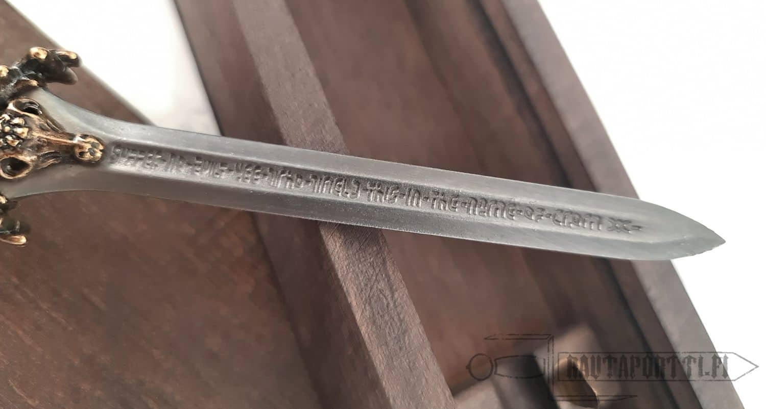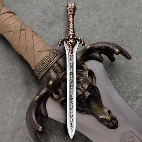 Tämä pienoisversio Conanin Isän miekasta on uskollinen jäljennös alkuperäisestä elokuvamiekasta. Tässä kirjeenavaajassa on säilytetty kaikki alkuperäisen miekan muotoiluelementit. Isän miekka -kirjeenavaaja on täydellinen lahja kaikille Conan Barbaaria rakastaville. Pienoismallimiekkaa voi käyttää kirjeenavaajana. Toimitetaan puisessa rasiassa.