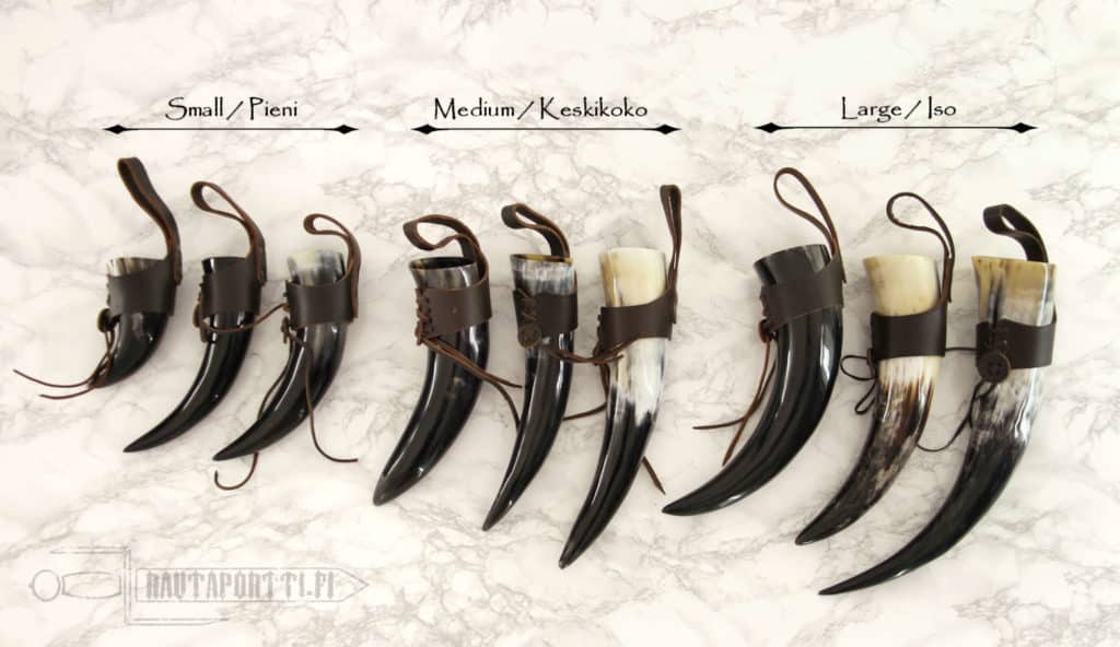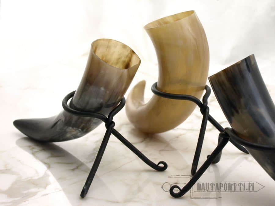 Tämän sarven mukana tulee nahkainen kannatin, jossa juomasarvesi kulkee helposti mukana seikkailuun kuin seikkailuun. Juomasarvea voi kantaa vyöllä mukana ja käyttää sellaisenaan tai pöytätelineen kanssa. Lisää tietoa takorautaisesta pöytätelineestä, joka sopii käytettäväksi tämän sarven kanssa löydät täältä -Juomasarven pöytäteline-