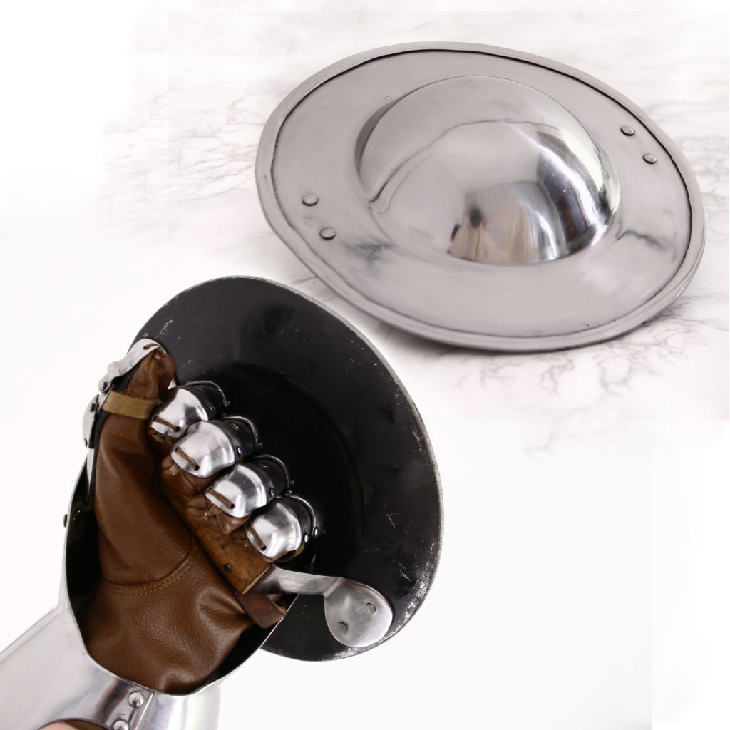Tämä kupurakilpi, eli buckleri, on yllättävän kevyt käsitellä. Keveys on ehdoton etu harjoitellessa, jolloin kilpeä saataa joutua pitämään ylhäällä pitkiäkin aikoja. Tämän kupurakilven kädensija on jokseenkin siro/ohut, mikä mahdollistaa kilpikäden käytön esim. vastustajan aseen hallintaan tai vastustajasta kiinnipitämiseen.