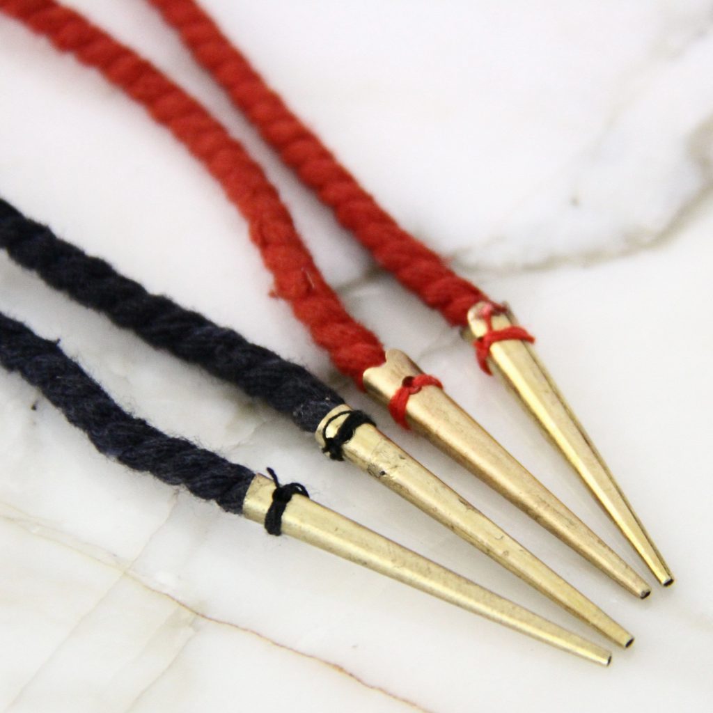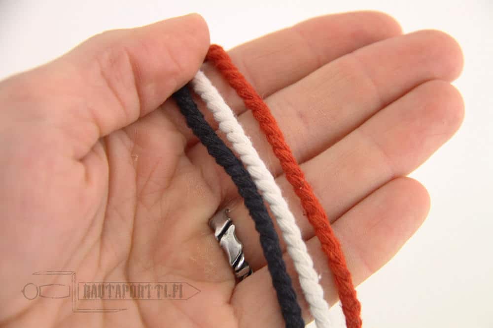 - Nyörissä messinkinen kärki helpottamassa nyörin pujottamista