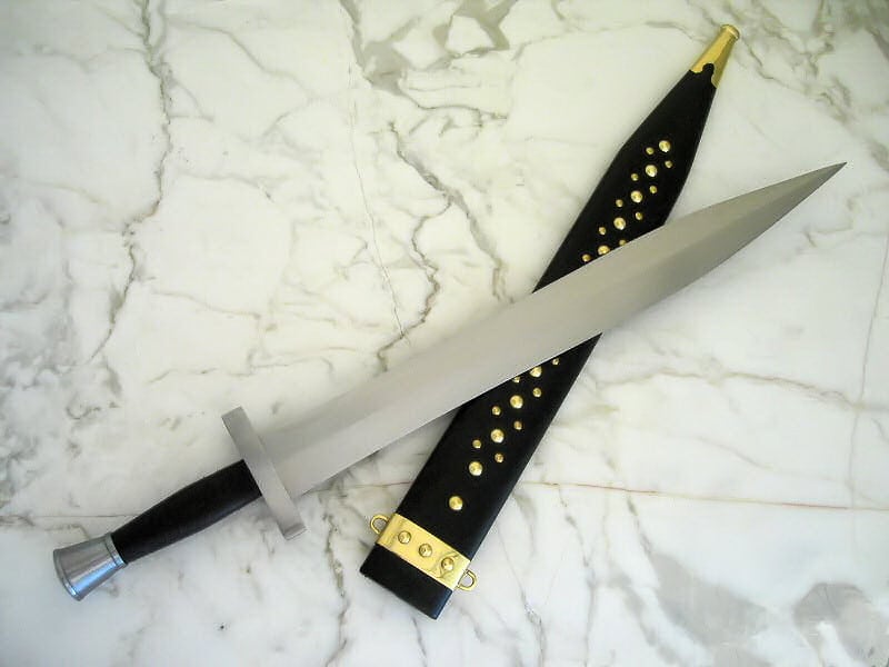 Kreikkalainen Hopliitti oli tyypillisesti kaupunkivaltion vapaa mies. Raskaasti aseistettu jalkaväen sotilas, joka taisteli kaikilla voimillaan puolustaakseen omaa kotikaupunkiaan. Kuuluisimmat Hopliitit tulivat tietysti Ateenasta ja Spartasta. Vaikka keihäs olikin Hopliitin pääase, lyhyitä miekkoja käytettiin lähitaistelutilanteissa. Lehden muotoinen terä oli suosittu läpi koko Antiikin ajan ja -maailman ja myymämme miekkamalli perustuu lukuisiin maalauksiin, taideteoksiin ja maaperässä säilyneisiin kappaleisiin. Miekassa on teräksiset väisti ja ponsi ja nahkanyörillä päällystetty puukahva. Tämä jäljennös on uskollinen esikuvilleen, mutta hiiliteräksinen terä on selkeästi parempaa laatua kuin antiikin aikana tarjolla olleet materiaalit. Puinen tuppi on päällystetty nahalla ja koristeltu messinkisillä niiteillä. Hopliitin miekka on ehdottomasti yksi hienoimmista Antiikin ajan aseista. Miekan malli noin 400-luvulta eaa.