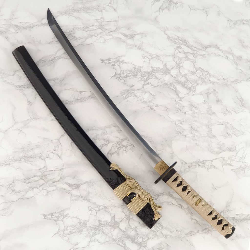 Huippumiekkaseppien käsin takoma ja käsin kiillottama erittäin laadukas lyhyt miekka raskaisiin tameshigiri-leikkuuharjoituksiin ja asiaansa paneutuville miekkakeräilijöille. Miekassa on erittäin vahva perinteisesti savikarkaistu 1095 hiiliteräksestä Honsanmai-rakenteella taottu terä. Wakizashissa on syvästi kaartuva käyrä terä, jollaista kutsutaan Koshi-Sori-teräksi. Sekä katana että wakizashi ovat erikseen saatavana, joten halutessasi saat kerättyä oman Daishōn. Tässä kahden miekan yhdistelmässä molemmissa miekoissa on silmiinpistävä erikoispitkä O-kissaki miekan kärki ja veitsenterävä ha.