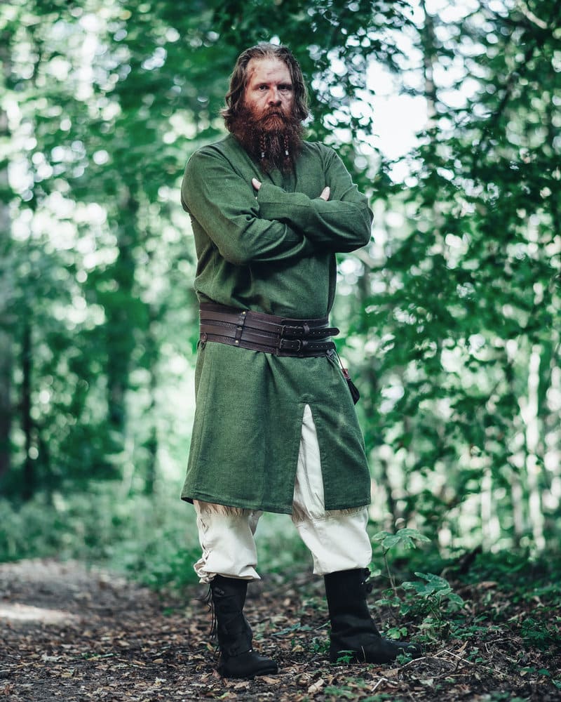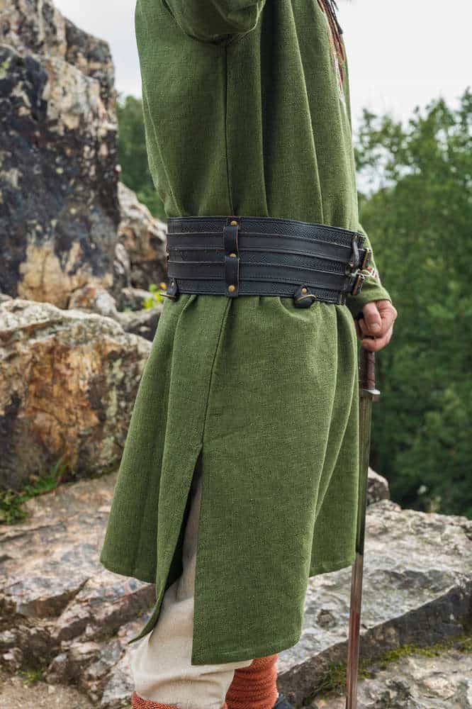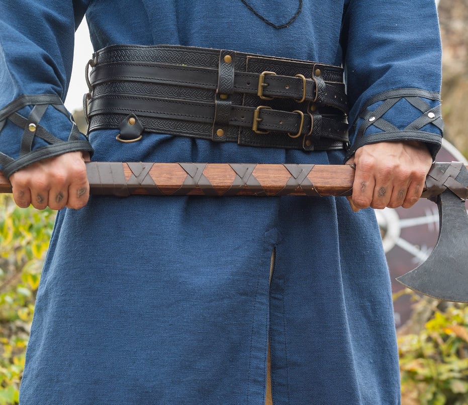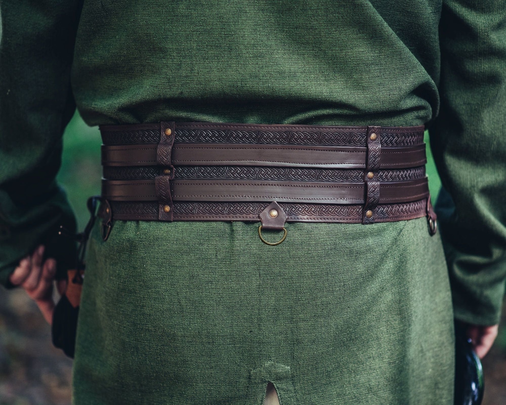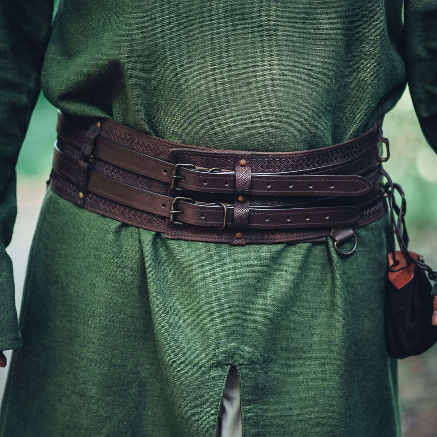 Täydellinen lisä jokaiseen viikinkiajan asuun, mutta sopii yhtälailla merirosvoillekin. Leveä vyö antoi aikansa sotureille ryhtiä, tyyliä ja toimi myös pienenä lisäsuojana suojaten herkkää mahaa ja munuaisten seutua selän puolella. Tyylillisesti tällainen leveä vyö vastaakin niin sanottua munuaisvyötä, joka on juuri munuaisten suojaksi tarkoitettu leveä vyö.