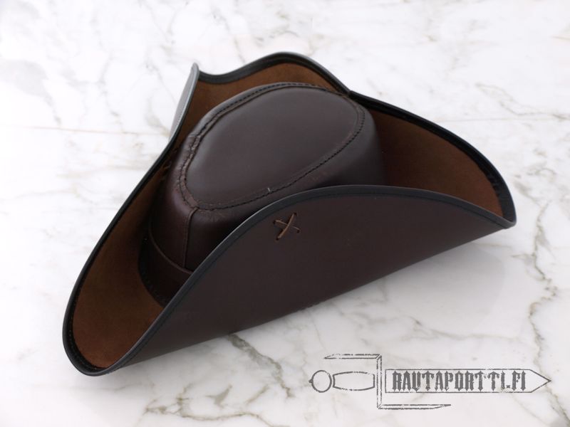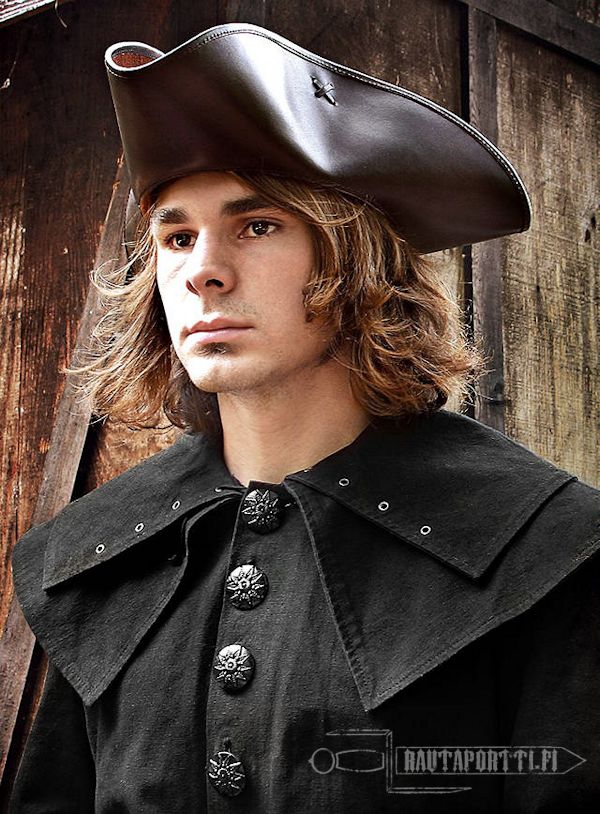 Kuninkaiden, kuten vaikkapa Ludvig XIV:n, lisäksi kolmenkulman hattu päätyi myös keskiluokan ja jopa merirosvojen asusteeksi. Meidän nahkainen kolmenkulman hattumme on saanut inspiraationsa ennemmin hurjamaineisten maantie- ja merirosvojen rämäpäisistä seikkailuista kuin Aurinkokuninkaan hovin valtakiemuroista.