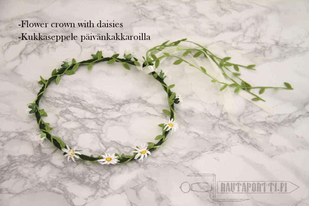 Seppele on kooltaan sopivin lapsille, mutta toki sitä voi aikuinenkin käyttää. Tällöin seppele vain jää enemmän päälaelle.
