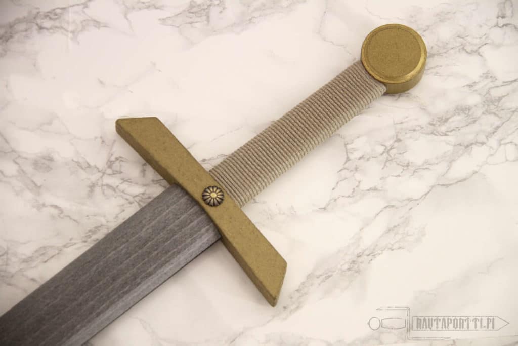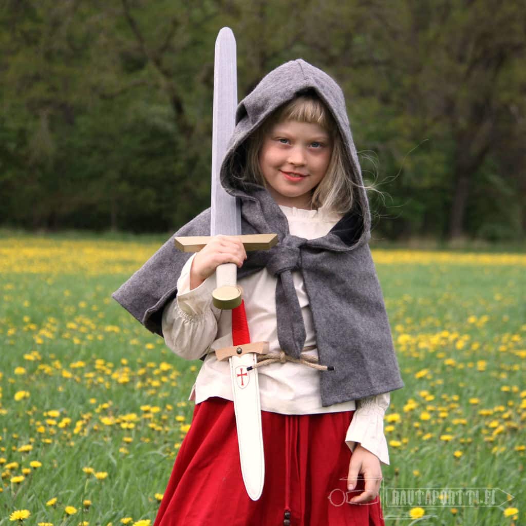 Kestävä puinen miekka on olennainen osa ritarikasvatusta. Vaikkei ritariksi isona aikoisikaan, on roolileikkien merkitys lasten kehitykselle mittaamaton kun luovuus ja sosiaaliset taidot kehittyvät hauskaa pidettäessä. Myymämme puinen kahden käden miekka saa mielikuvituksen laukkaamaan ja soveltuu mainiosti hirviöitä, örkkejä ja lohikäärmeitä vastaan taisteluun sekä kaverien pelastamiseen pinteestä. Miekka on sen verran lujaa laatua, että sillä havisuttaa muutakin kuin historiaa. Miekka on maalattu metallihohtoiseksi, aitouden tunnetta lisäämään.