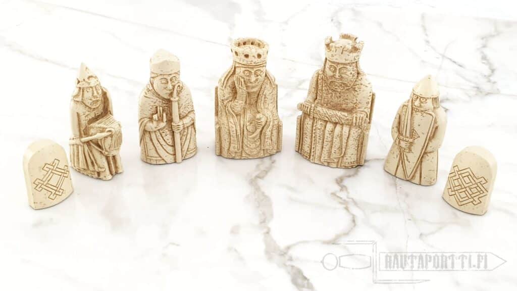 - Täydellinen 1:1 jäljennössetti Lewisin shakkinappuloista