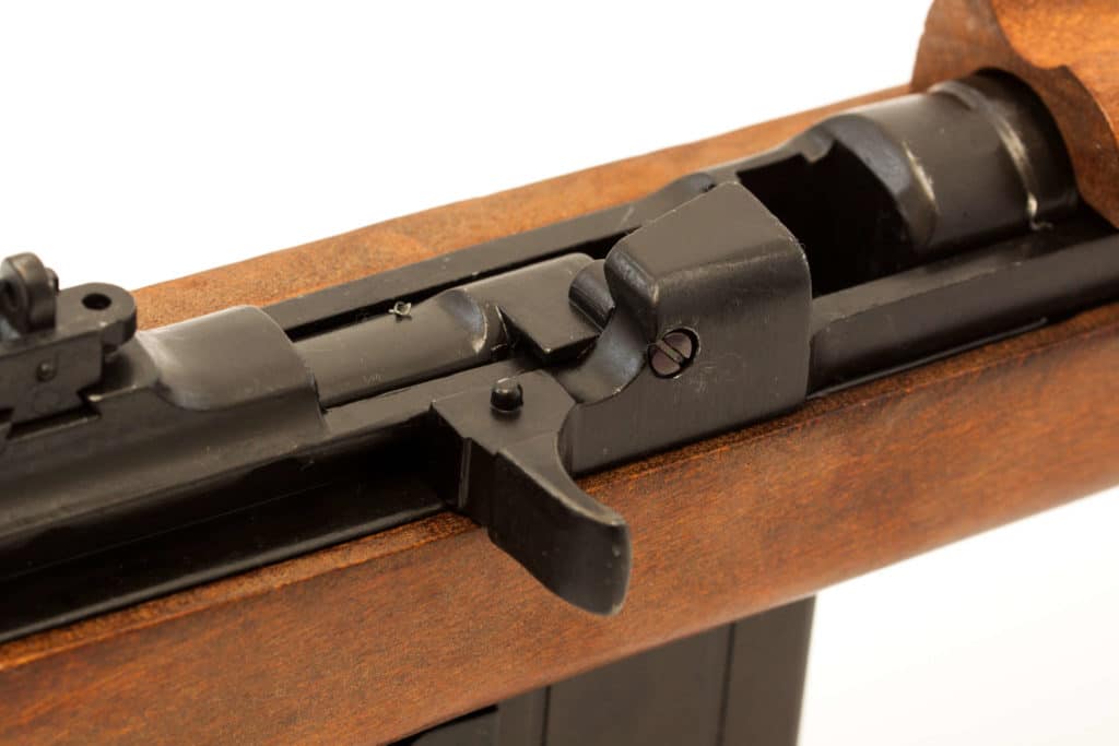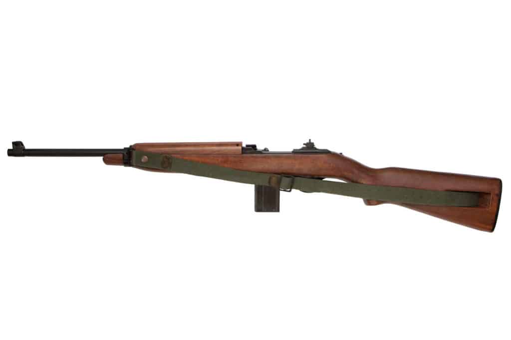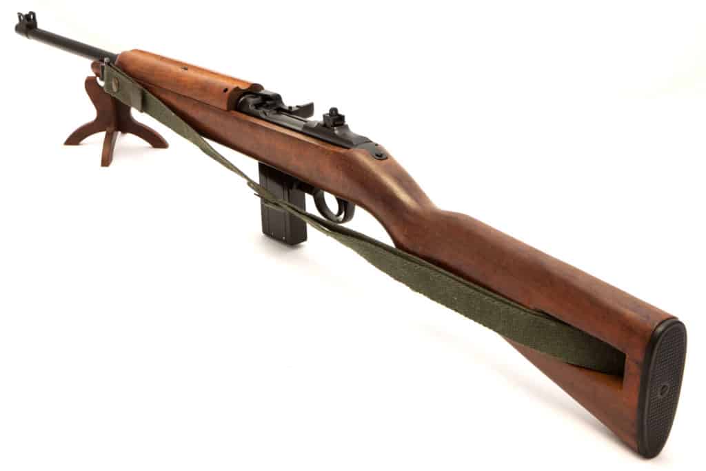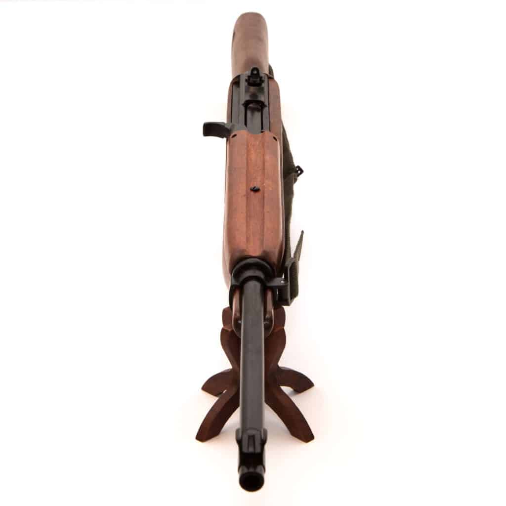 M1 karbiinilla oli alkujaan 15 panoksen lipas, jollainen tulee tämänkin replikan mukana. Kuvissa näkyvä olkahihna sisältyy pakettiin.
