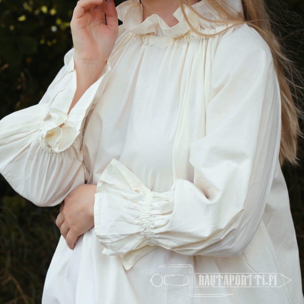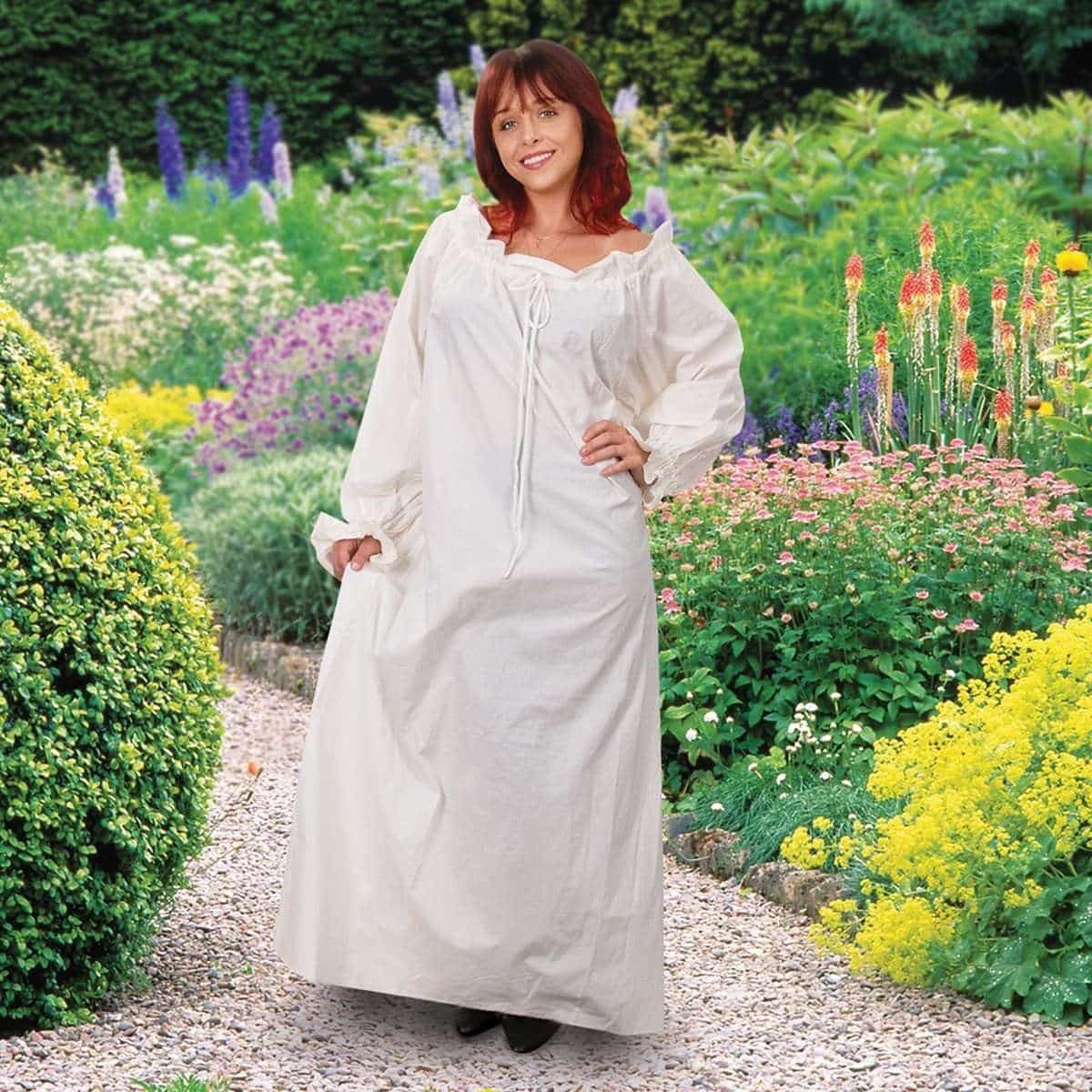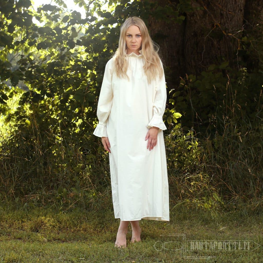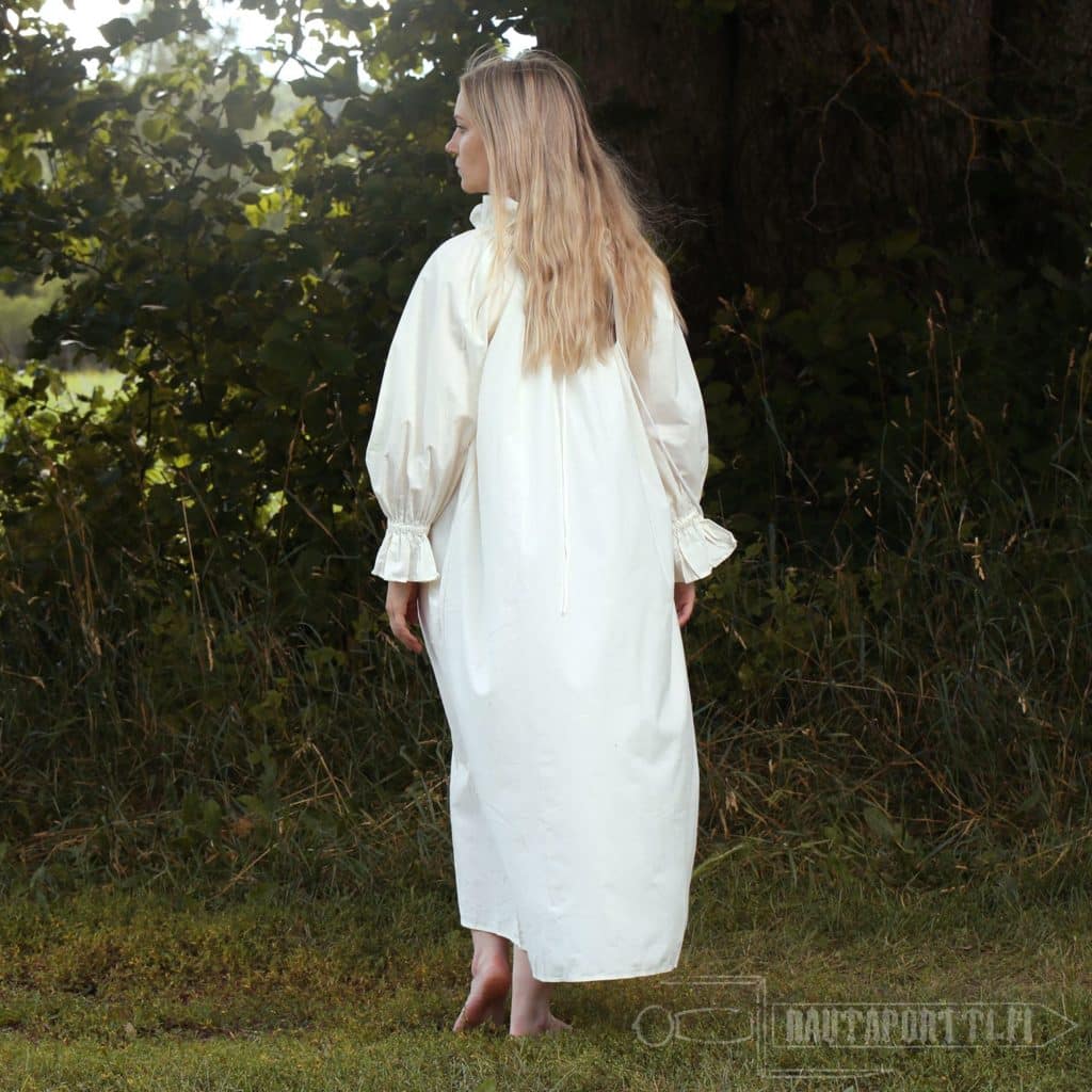 Niin keskiajalla kuin pitkälle keskiajan jälkeenkin naiset käyttivät alusmekkoja lähes poikkeuksetta. Alusmekko piti päälivaatteet puhtaana pidempään, ja hyvin usein alusmekkoa käytettiin myös yöpukuna. Tämä alusmekko on naisellinen ja kevyt vaate, joka sopii käytettäväksi monen päällyshameen, -mekon ja -vaatteen alla. Hihansuut ovat joustavat, joten ne on helppo asetella itselle sopivaksi. Kaula-aukossa on kiristysnyöri, jonka ansiosta alusmekon kaula-aukon suuruutta saa itse säädettyä.