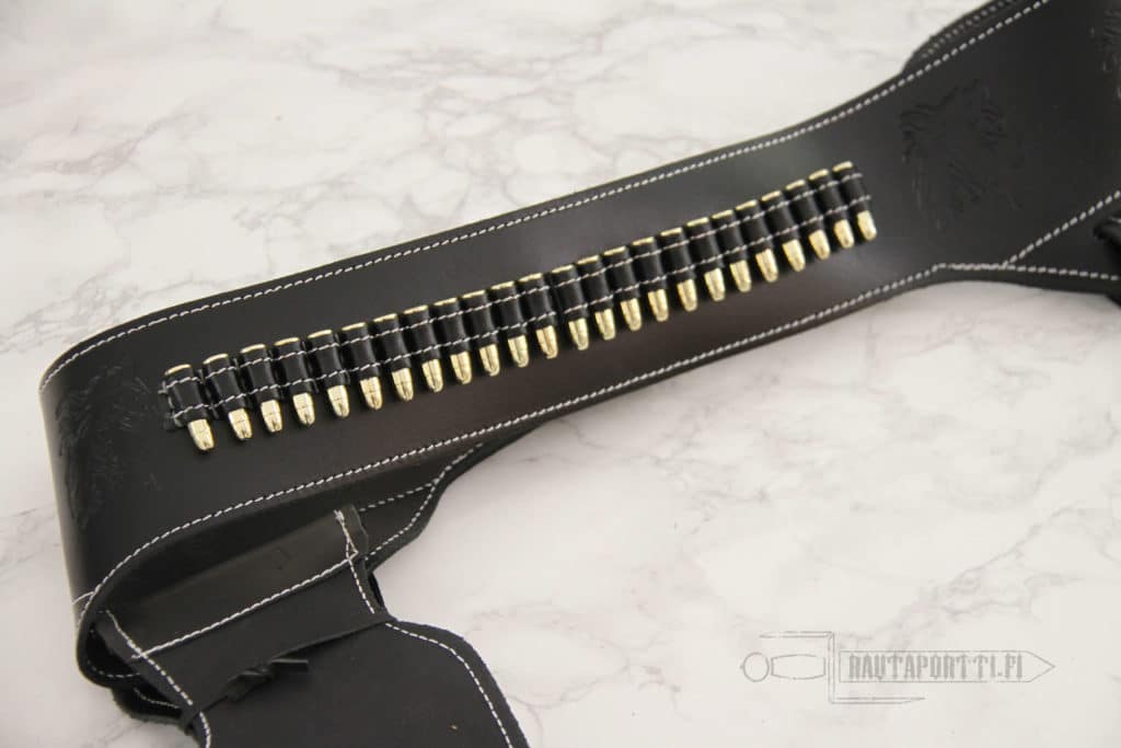 Musta asevyö kahdelle revolverille sis. 24 luotia