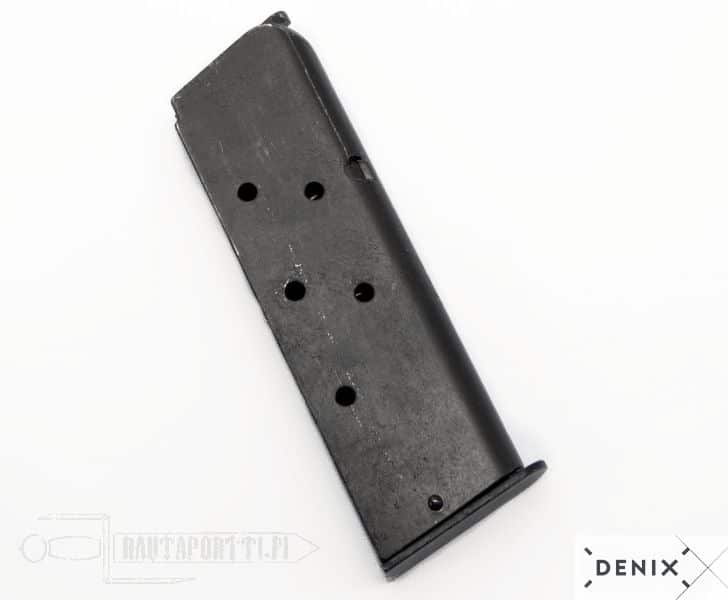 Colt M1911A1 lippaaseen mahtuu 7kpl .45 ACP panoksia ja se on useimpien pistoolien tapaan tehokas alle 50m etäisyyksillä.