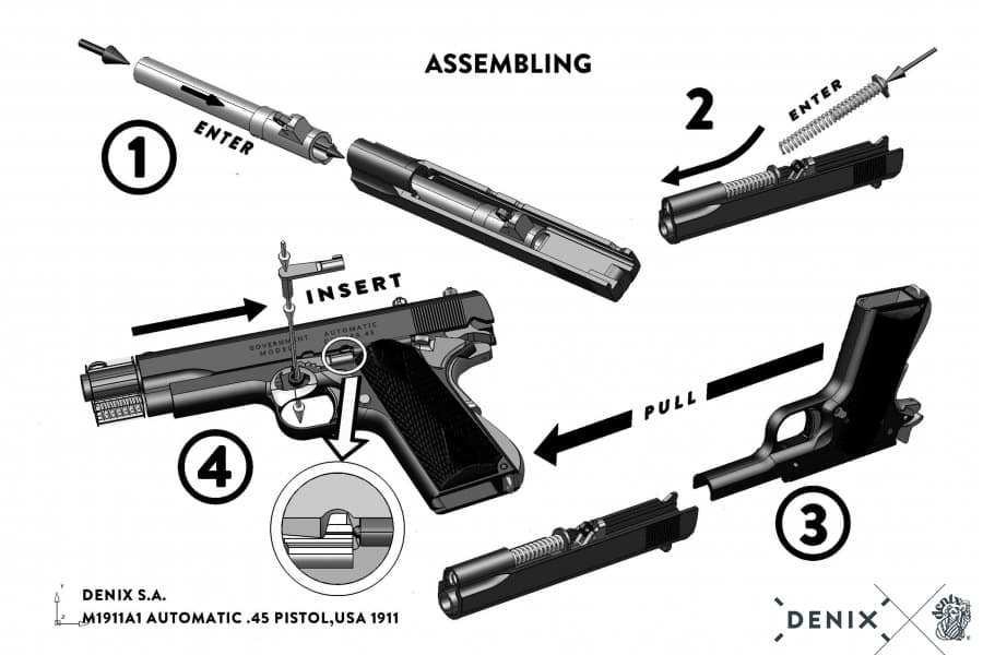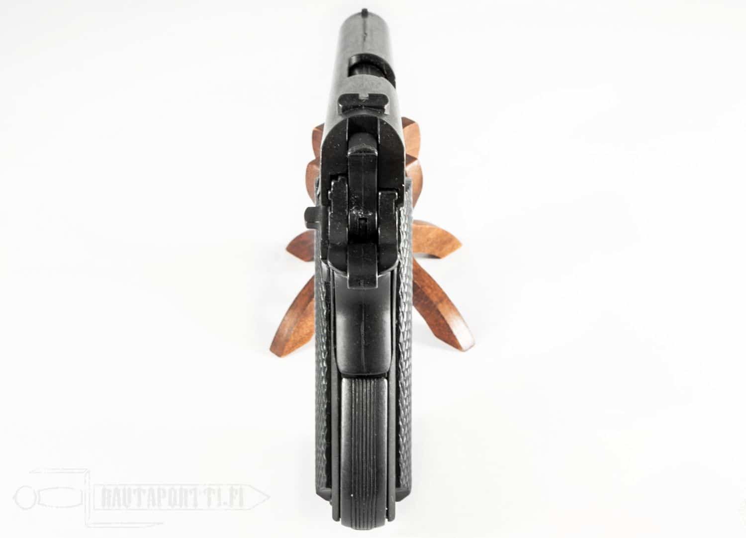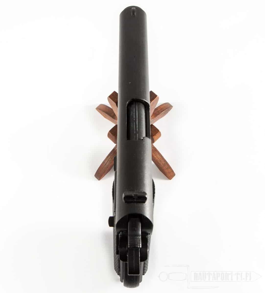 - Tämä ase on tarkka kopio alkuperäisestä. Asejäljitelmä on kokonsa ja painonsa puolesta kuin alkuperäinen ja sen mekanismit ovat toimivia. Pistoolin pystyy virittämään ja kuivalaukaisemaan kuten oikean. Luistin saa vedettyä taakse ja lippaan saa irroitettua. Peukalovarmistin toimii kuten aidossa ja varmistaa pistoolin. Kahvavarmistinkin liikkuu ja luistin saa lukittua taka-asentoon. Aseen saa kenttäpurettua kuten aidon. Valmistusmateriaalista johtuen aseen mekanismit eivät loputtomiin kestä aseen virittämistä ja laukaisua.