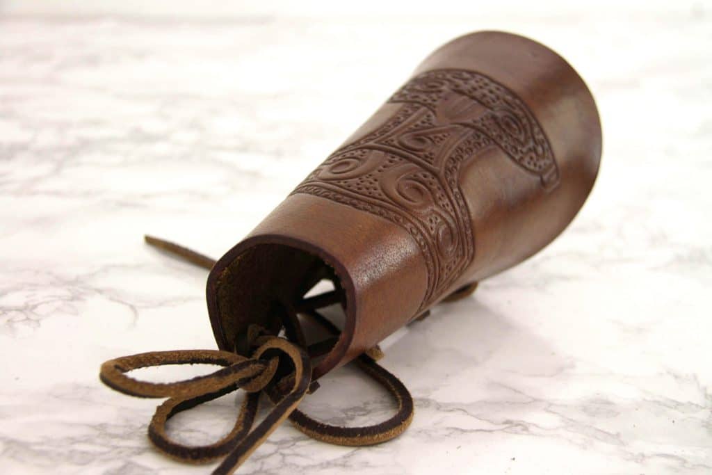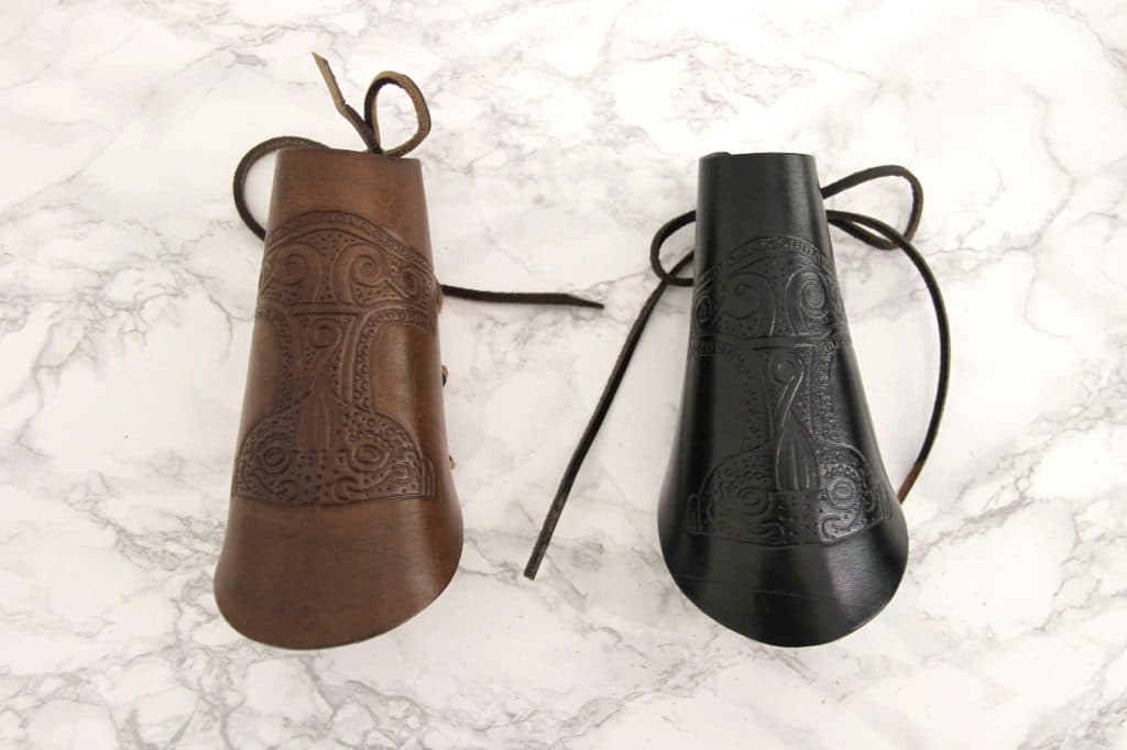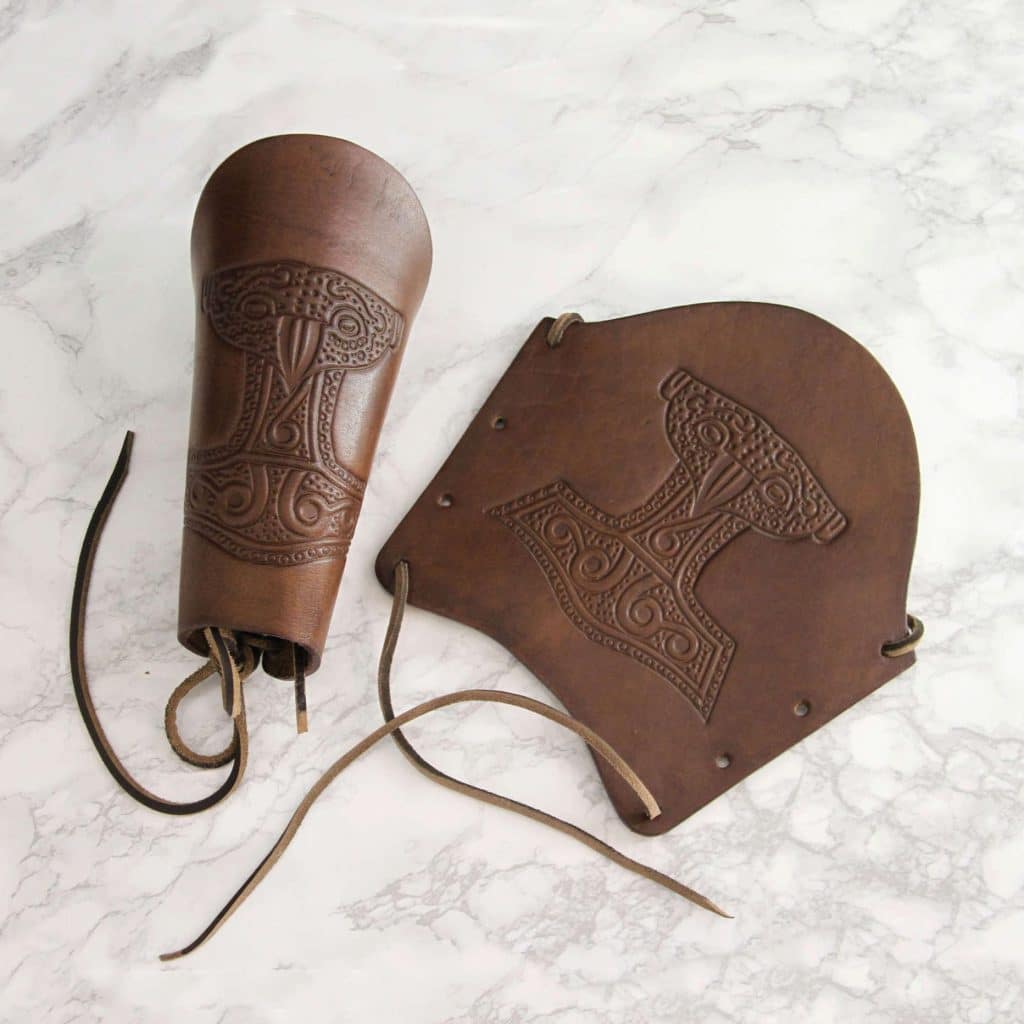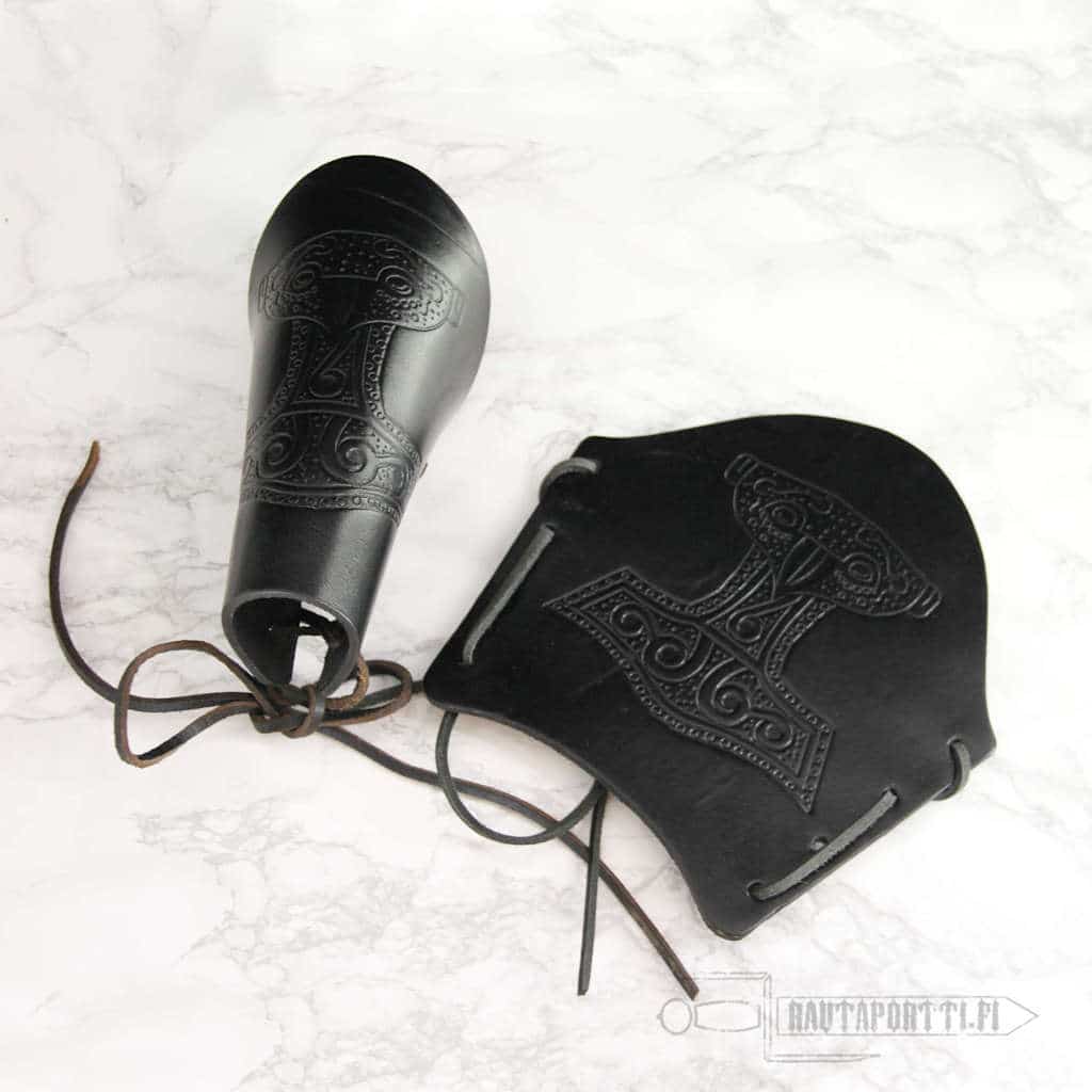 Nahkainen käsivarren suoja kohokuvioidulla Thorin vasaralla