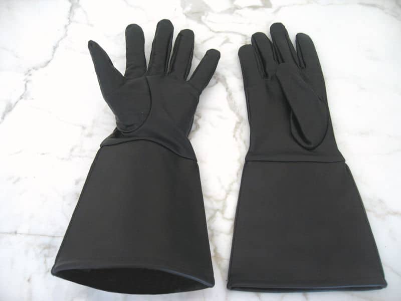 Pitkävartisia nahkahansikkaita on käytetty taisteluissa läpi aikakausien suojaamaan soturien käsiä. Myymämme kappaleet toimitetaan koristelemattomina, joten yksilöllinen koristelu johonkin tiettyyn aikakauteen on helppoa. Hansikkaiden kämmenosa ranteesta ylöspäin on korkealuokkaista, pehmeämpää ja joustavaa nahkaa. Pehmeä nahka suojaa miekkailijan kättä, mutta samalla herkkä tuntuma miekan kahvaan säilyy.