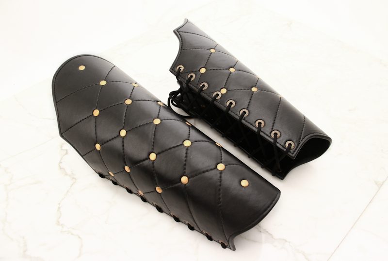 Sopii useiden eri aikakausien ja tyylien asuihin aina roomalaisesta sotilaasta keskiaikaiseen seikkailijaan ja fantasia-asuihin Paketissa kaksi säärisuojaa Saatavilla myös samaa sarjaa olevat nahkaiset käsivarsisuojat Kokonaispituus: n. 35,5 cm Pituus reunassa: n. 23,5 cm Paksuus: 5,2-6 mm