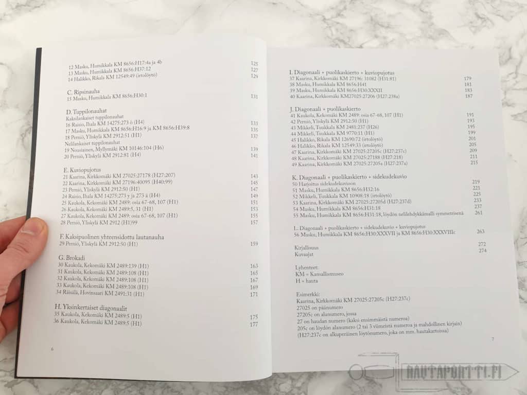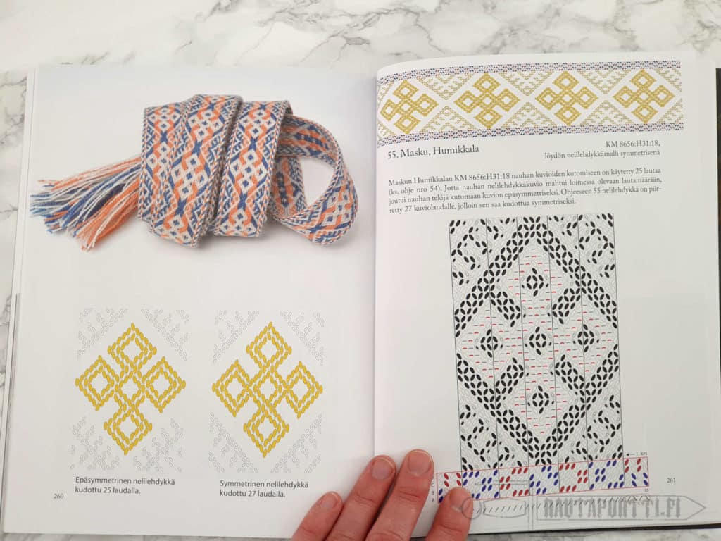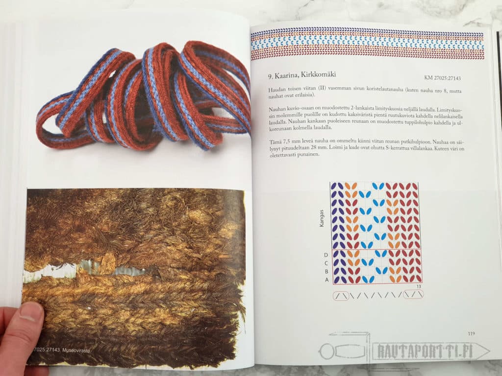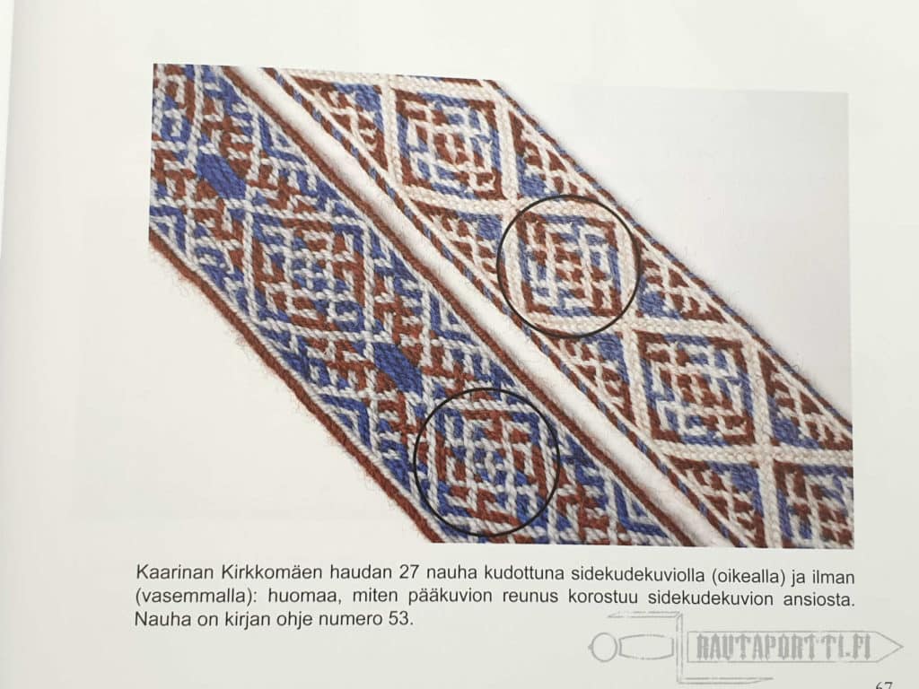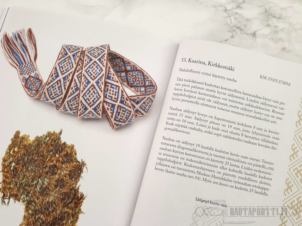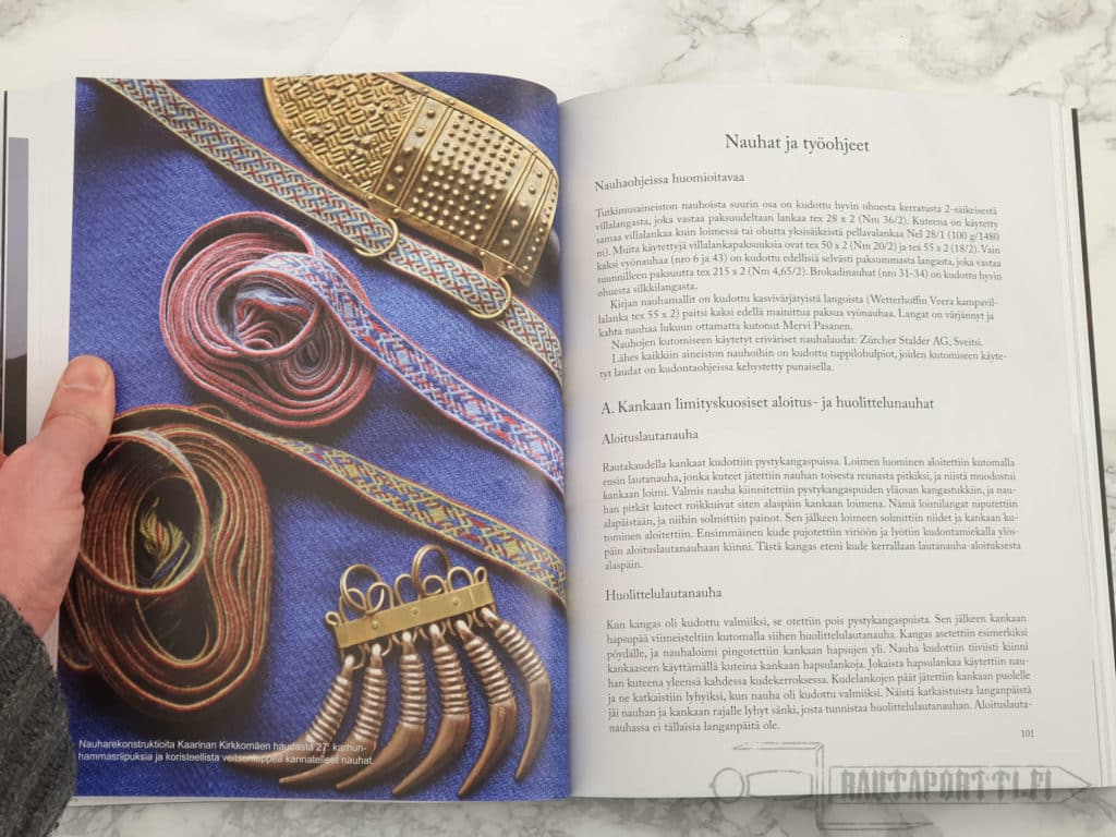 Kirja sisältää 56 arkeologista nauhaa Suomen rautakaudelta ohjeineen, nauhojen valmistustekniikat ja kuvauksen nauhatutkimuksen kehitysvaiheista Suomessa. Ensimmäistä kertaa kirjassa julkaistaan myös alkuperäisten nauhalöytöjen kuvia Museoviraston kokoelmista.