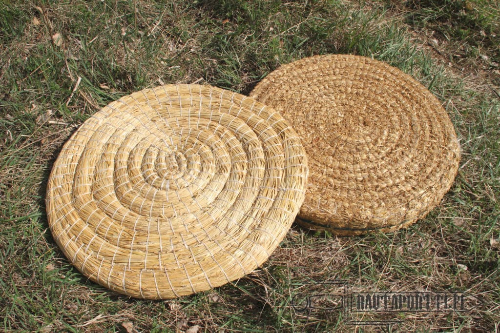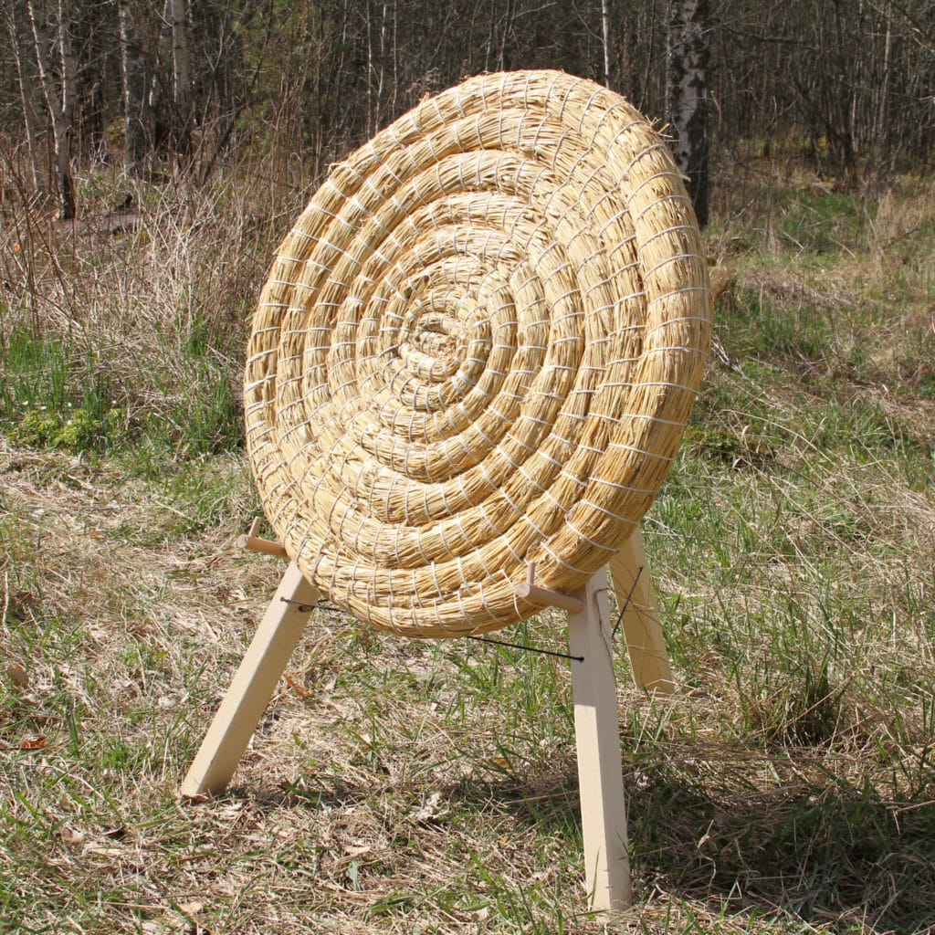 Tämä perinteinen olkitaulu tuo kivasti vanhaa tunnelmaa jousiammuntaharjoituksiin ja -kilpailuihin. Helposti käsiteltävänä tämän kokoisen taulun saa helposti mukaan niitylle, puutarhaan, metsään tai jousiammuntaradalle, missä sitten pääsetkin ampumaan. Sopii käytettäväksi niin ulkona kuin sisälläkin. Taulu on helppo asettaa esille ammuntaa varten vaikka nojaamaan puuta vasten tai erilliseen telineeseen, jolla taulun saa irti maasta.