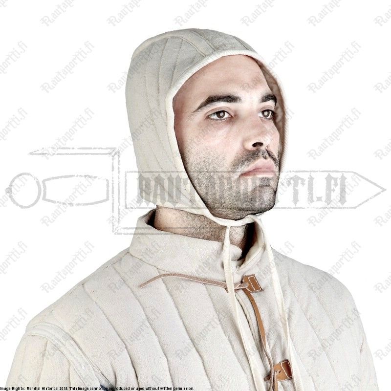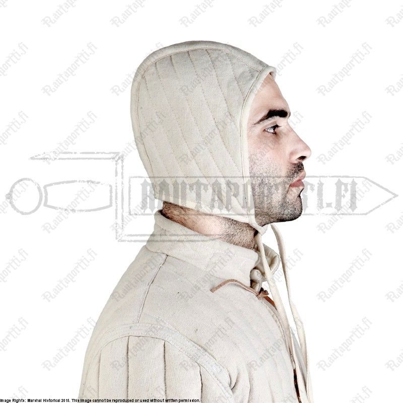 Kypärien ja rengashaarniskahuppujen alla käytettiin poikkeuksetta pehmusteita käyttömukavuuden vuoksi ja pehmentämässä iskujen voimaa. Tämä malli sopii niin ritarin kuin minkä tahansa muunkin soturin päähän. Suojahuppua voi käyttää kaikkien kypärämallien alla pehmusteena tai pelkältään suojaavana päähineenä. Paksu, tukeva ja kestävä pehmustehuppu on omiaan historianelävöitystaisteluihin.