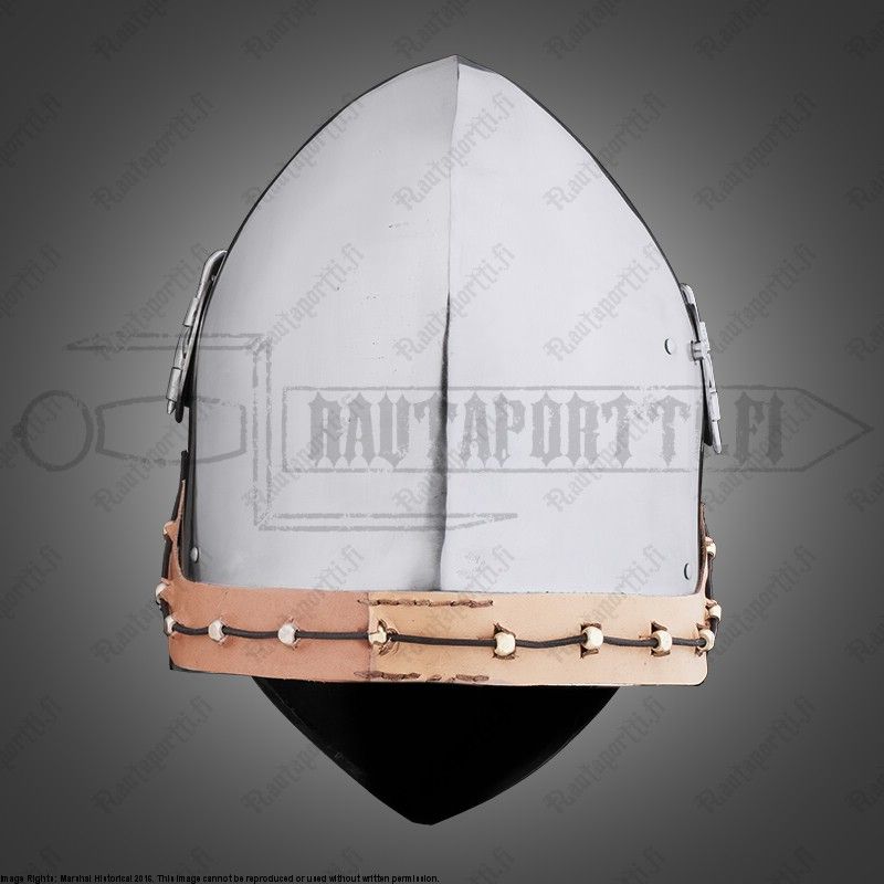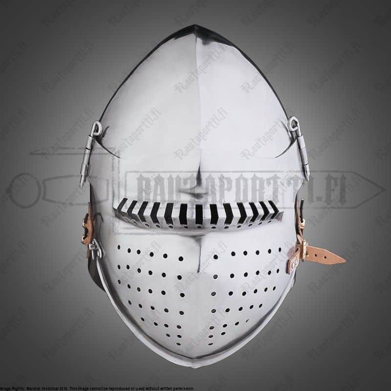 Valmistettu paksummasta 2,5 mm teräksestä kestämään mahdollisimman hyvin raskaan taistelun rasituksia. Olipa lajina sitten buhurt, historical medieval battle (HMB), heavy combat tai muu Battle of the Nations -tyylinen taistelu, paksummasta teräksestä taottu kypärä pitää pääsi paremmin suojassa.